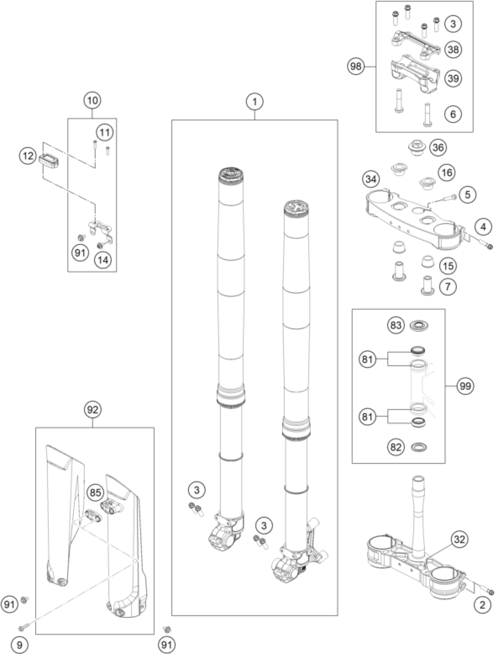KTM 450 SMR 2025 FRONT FORK, TRIPLE CLAMP Diagram