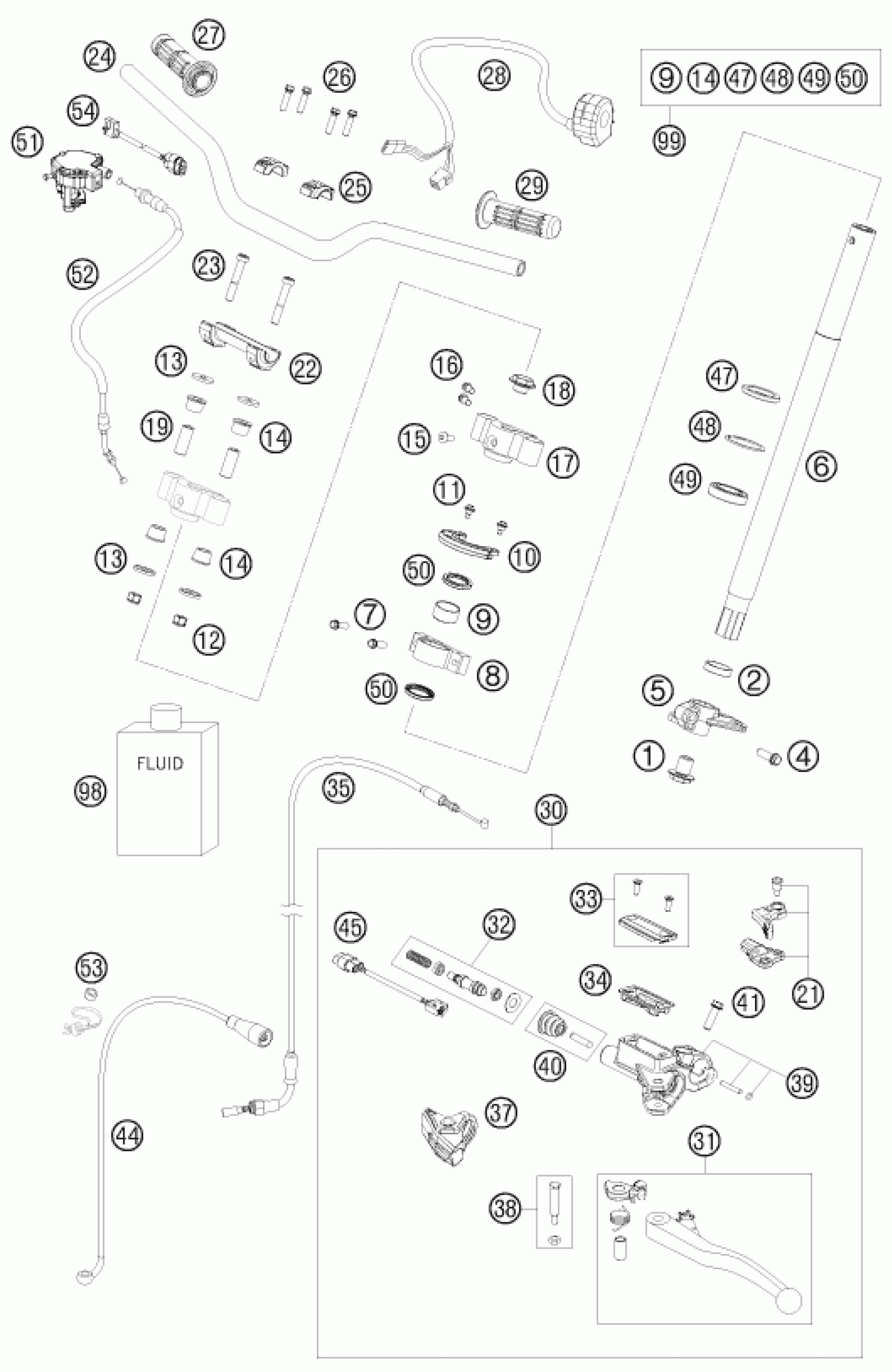 KTM 450 SX ATV 2009 HANDLEBAR, CONTROLS Diagram