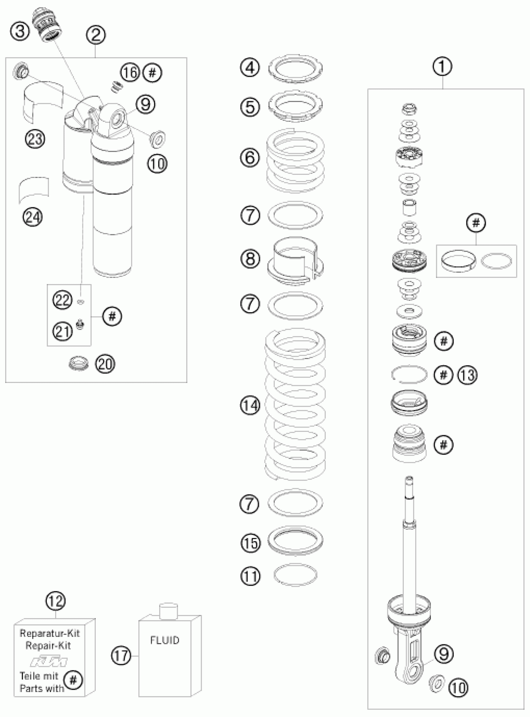 KTM 450 SX ATV 2009 SHOCK ABSORBER DISASSEMBLED Diagram