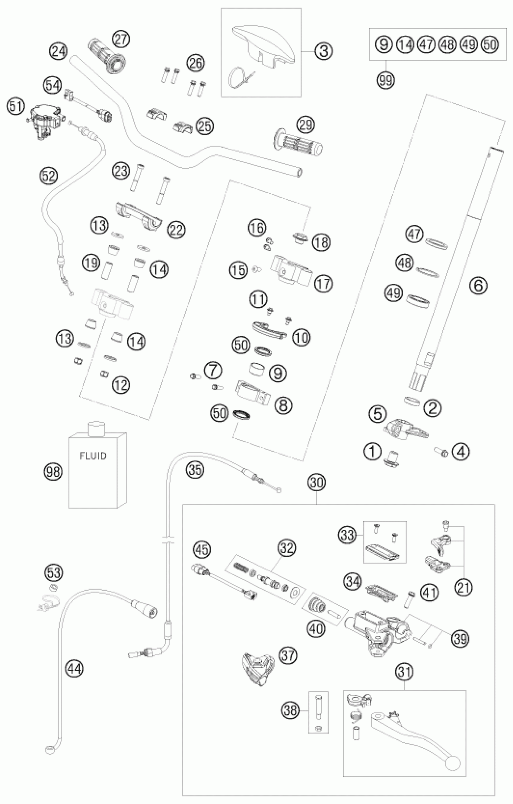 KTM 450 SX ATV 2010 HANDLEBAR, CONTROLS Diagram