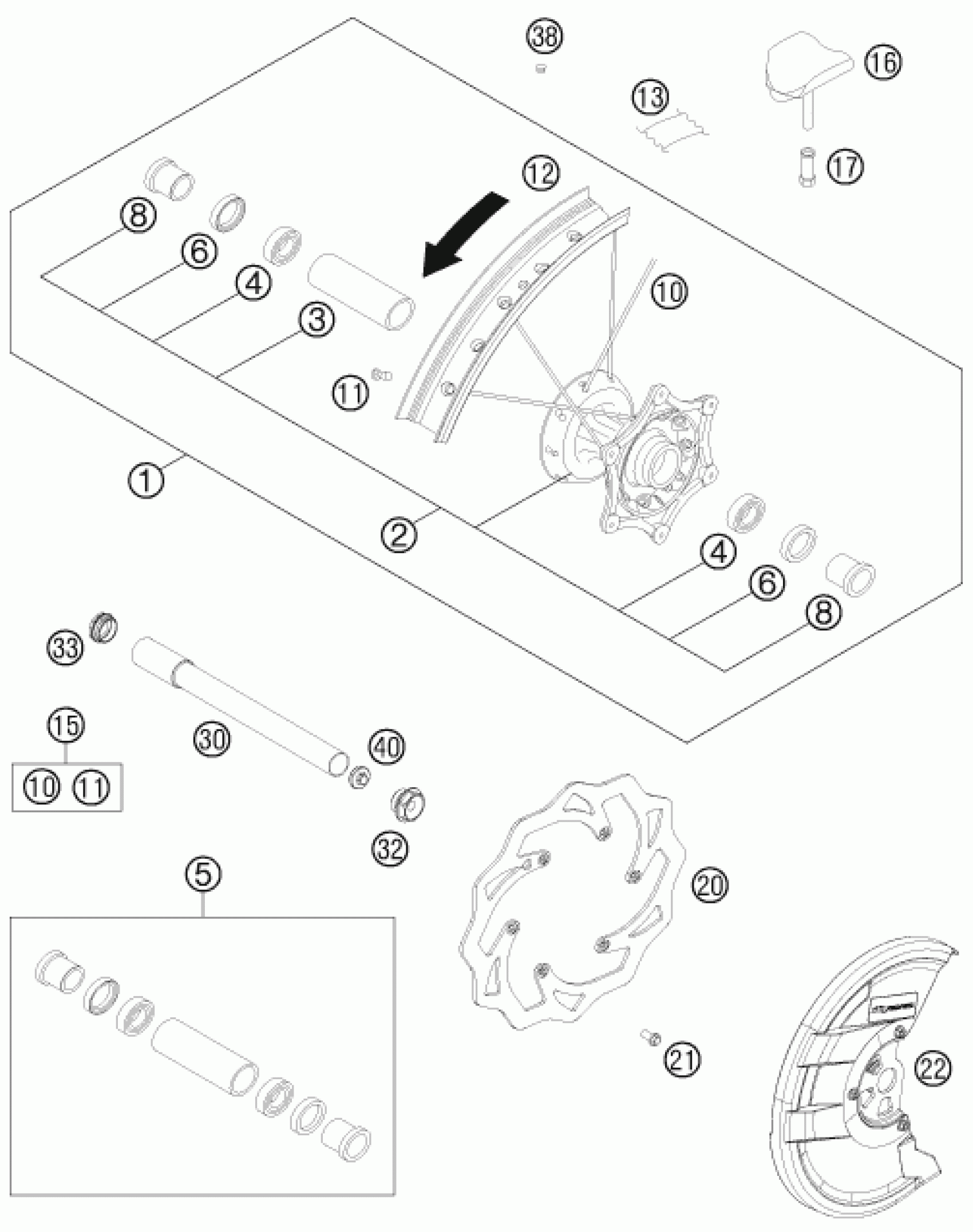 KTM 450 SX-F FACT.REPL. 2012 FRONT WHEEL Diagram