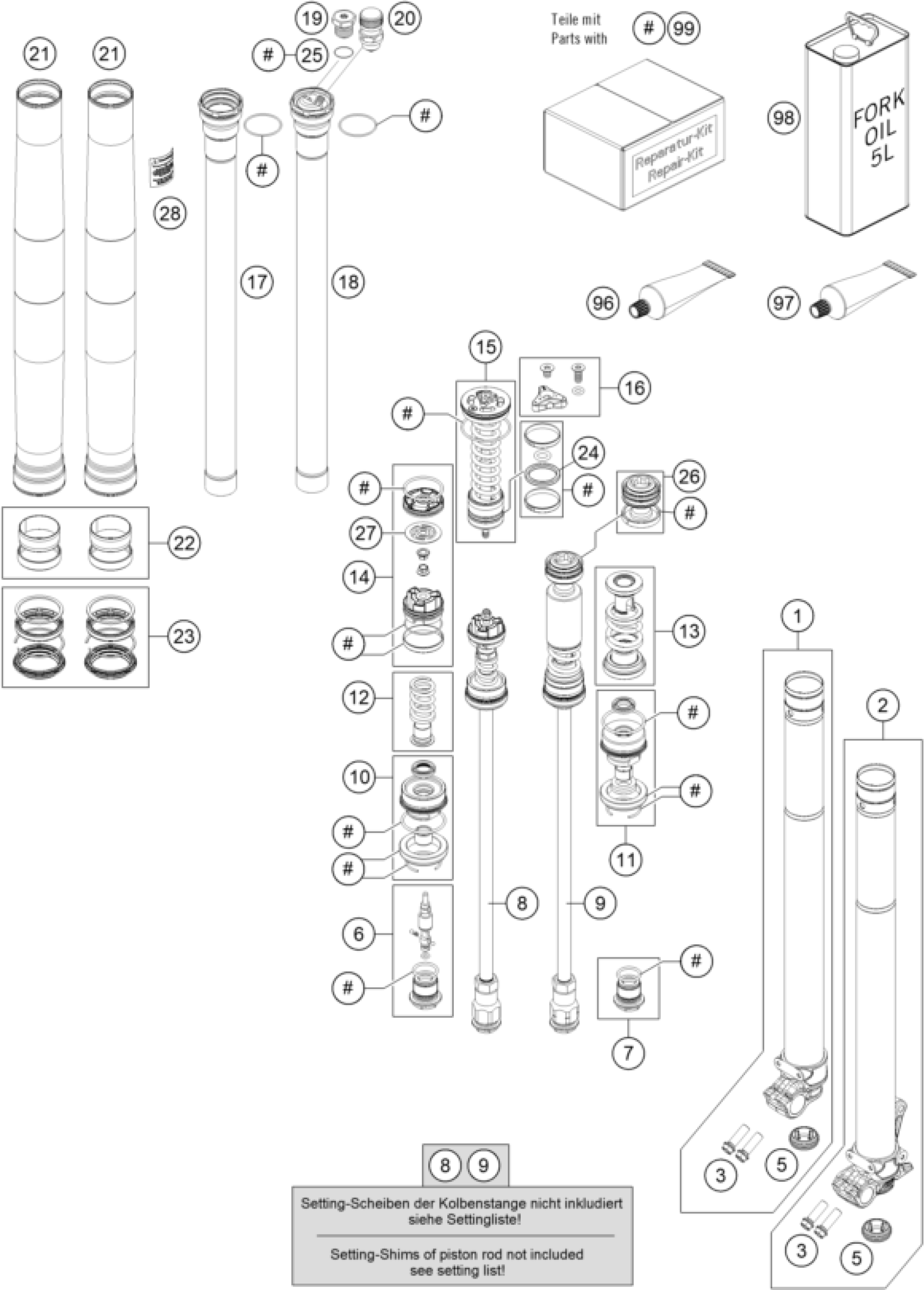 KTM 450 SX-F Factory Edition 2018 FRONT FORK DISASSEMBLED Diagram