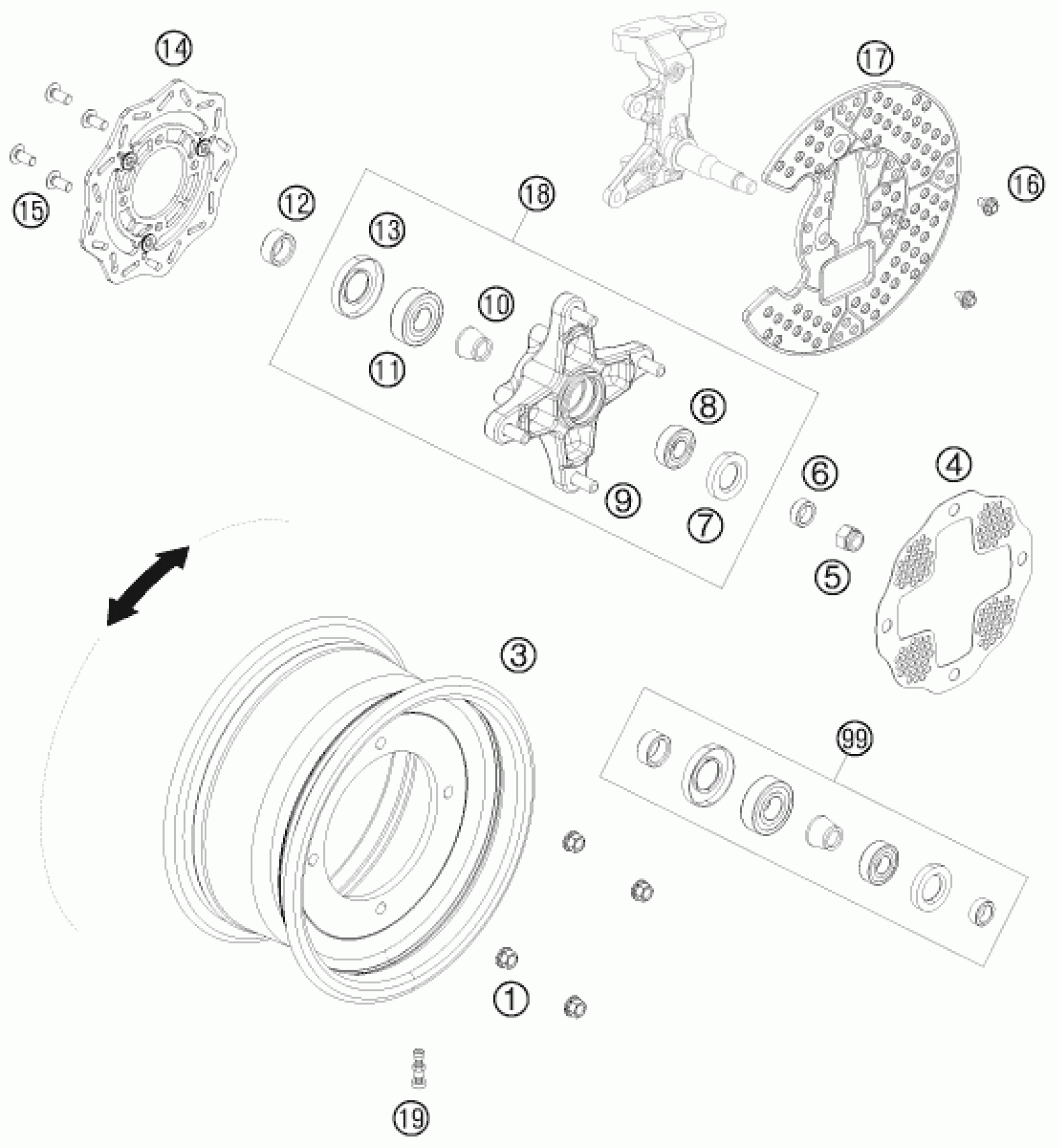 KTM 450 XC ATV 2008 FRONT WHEEL Diagram