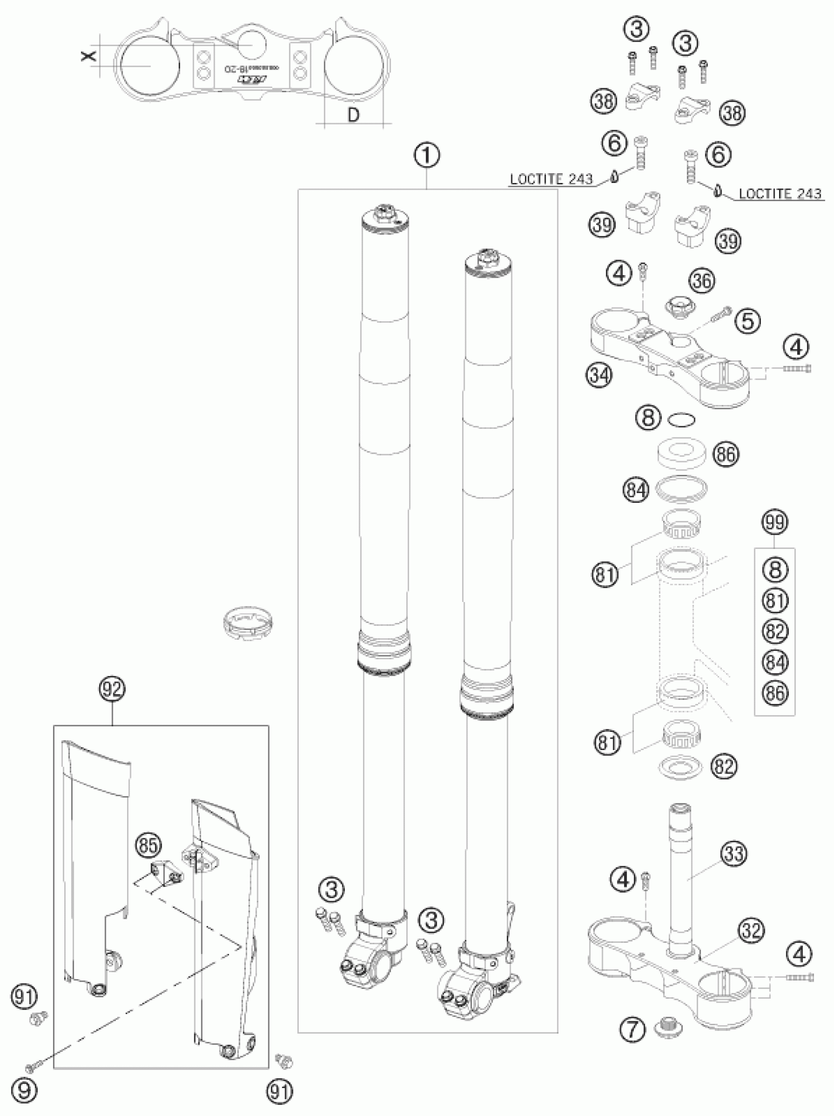 KTM 450 XC-F 2008 FRONT FORK, TRIPLE CLAMP Diagram