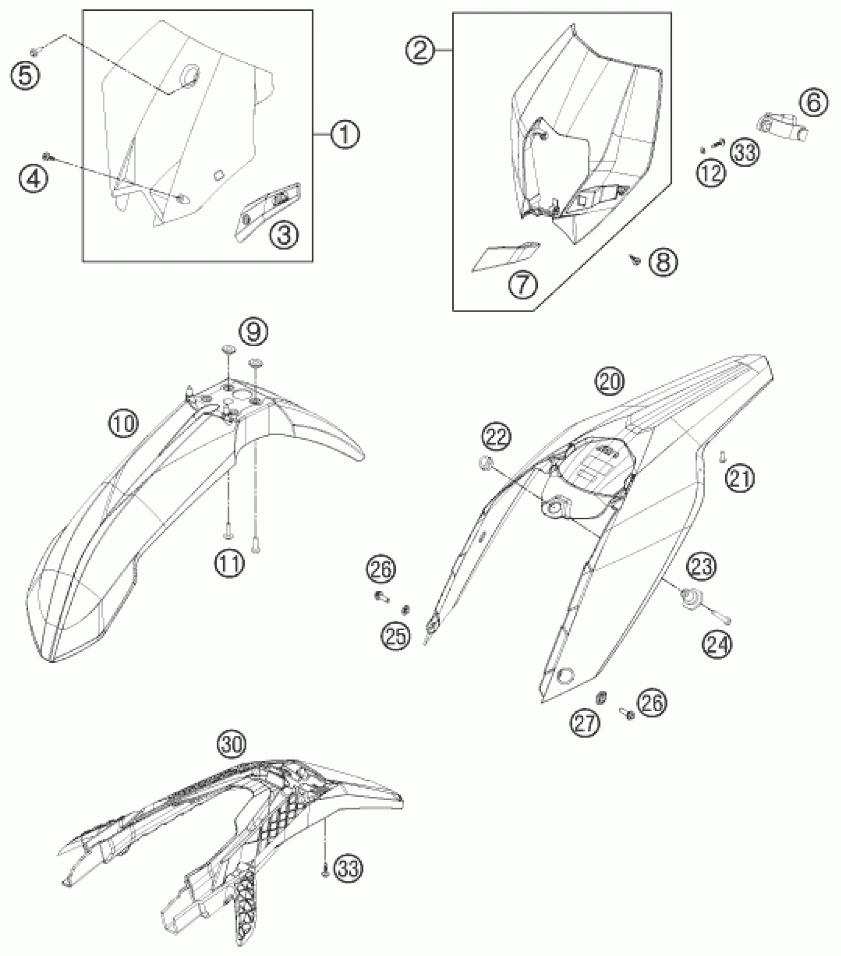 KTM 450 XC-W SIX DAYS 2011 MASK, FENDERS Diagram