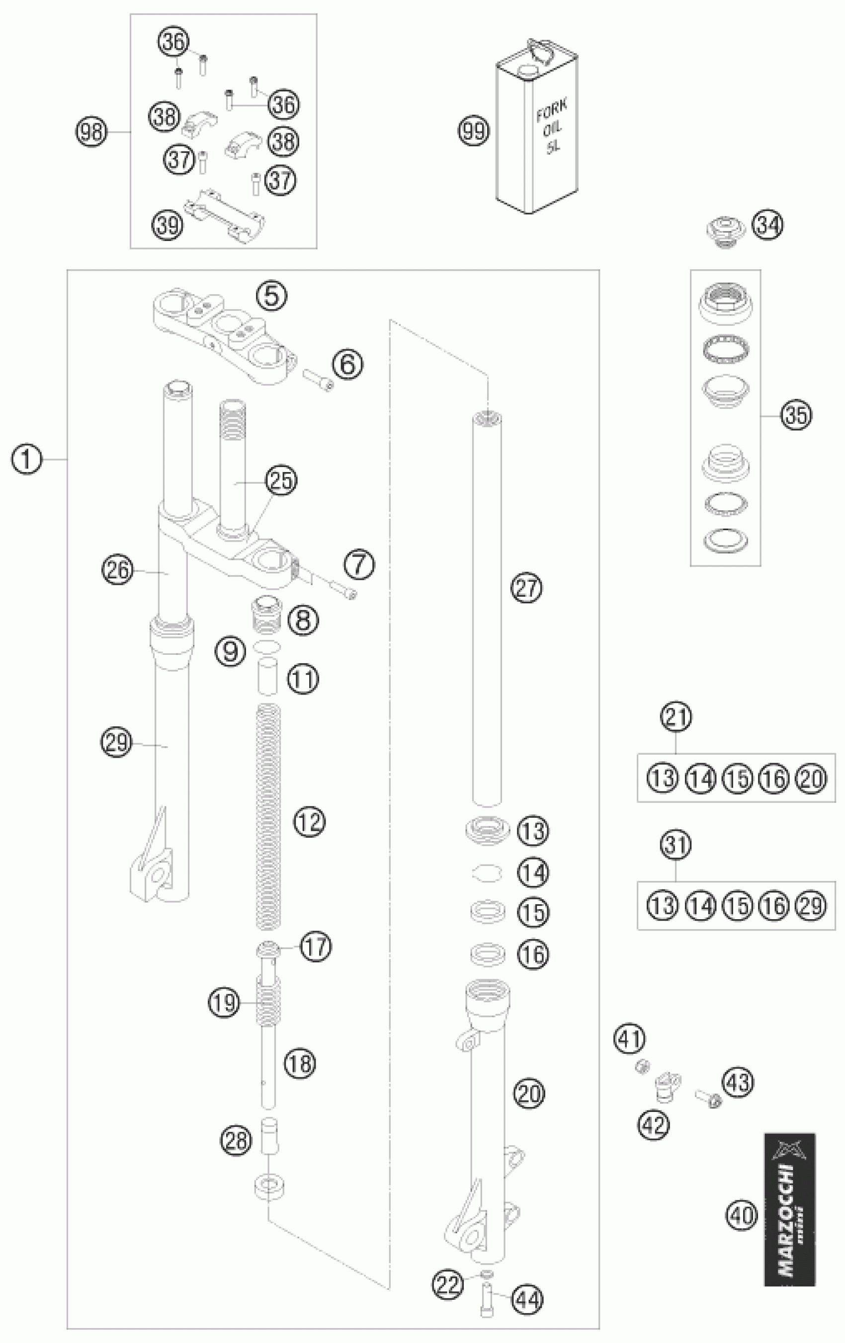 KTM 50 SX MINI <2008 FRONT FORK, TRIPLE CLAMP Diagram