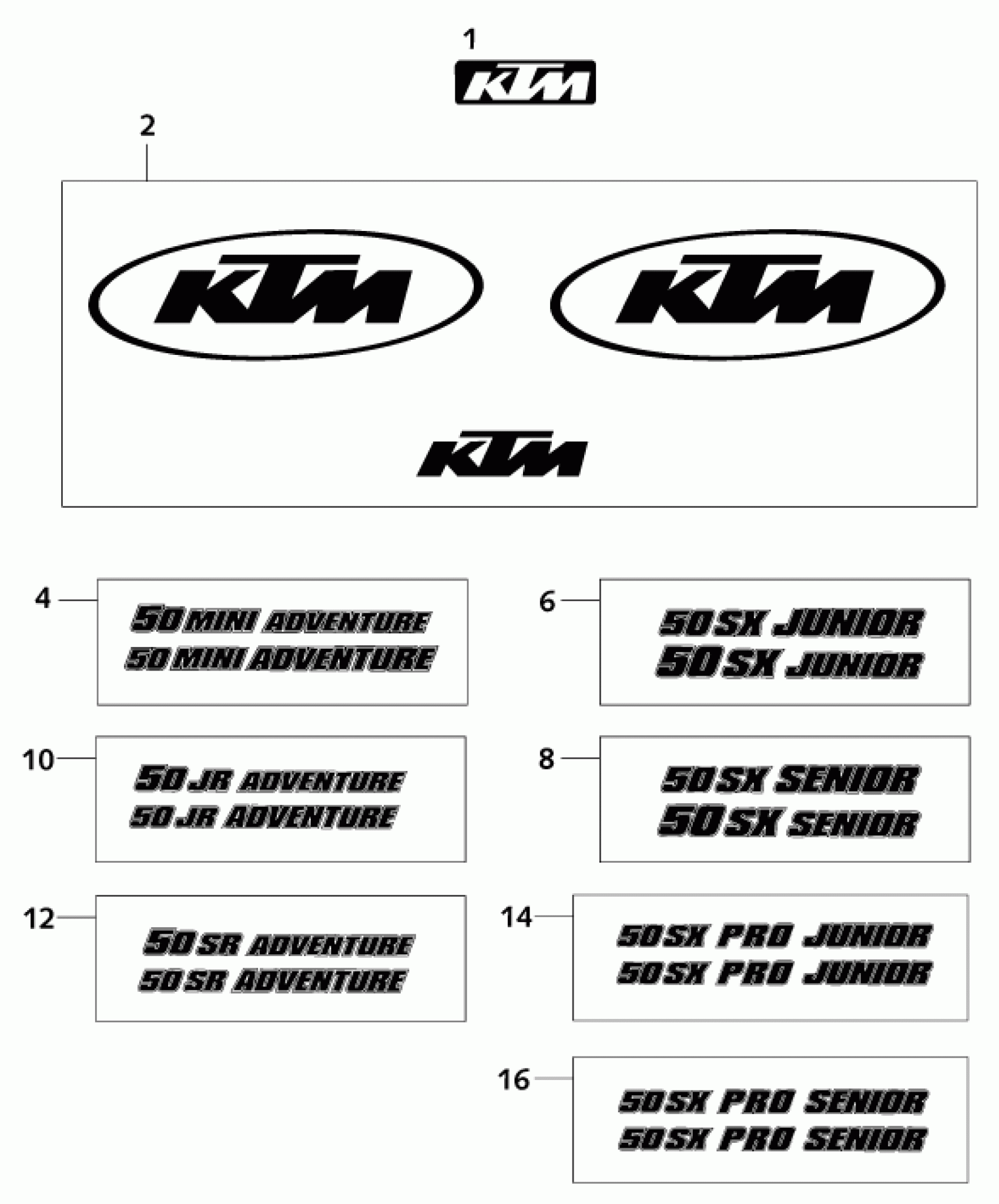 KTM 50 SX SENIOR 2001 DECAL Diagram