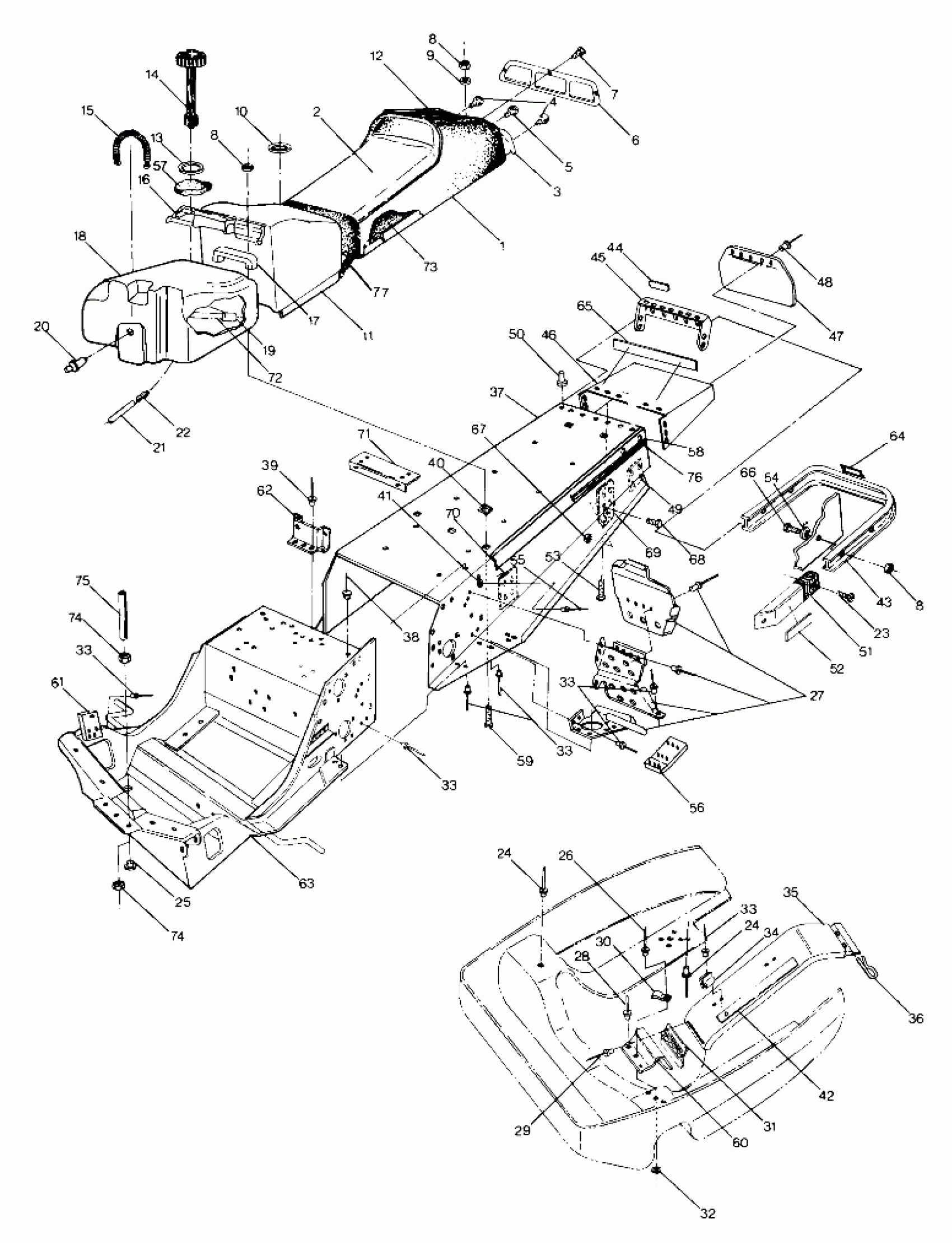 Polaris 500 - 0900764 CHASSIS AND SEAT 500 and 500 Classic Updated 2/90 (4916791679001A) Diagram