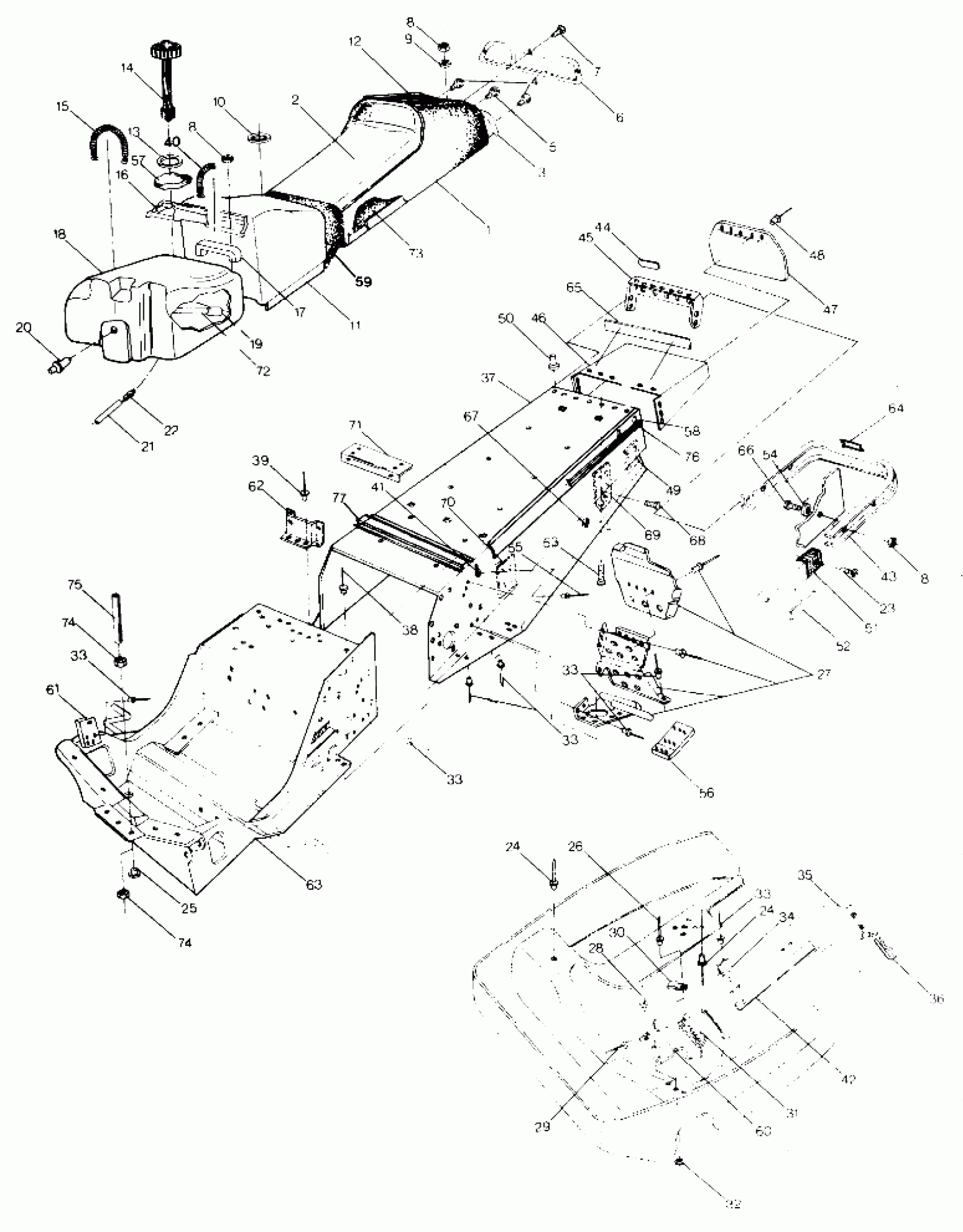 Polaris 500 - 0910764 CHASSIS AND SEAT 500 and 500 Classic (4919251925001A) Diagram