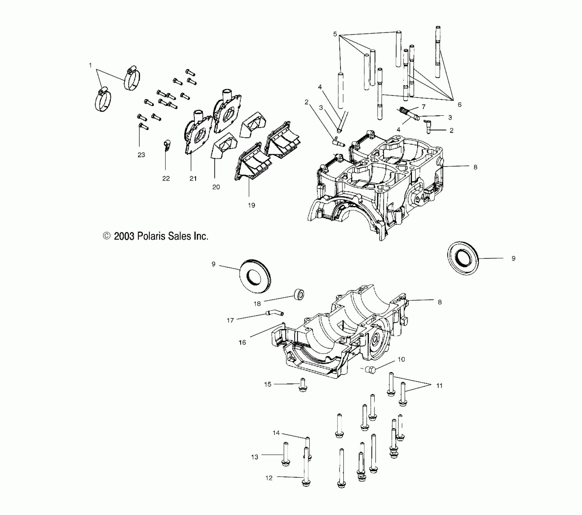 Polaris 500/600 XC SP EDGE/M-10 - S04NP5CS CRANKCASE - S04NP5CS/A/B/C/S04NE5CS/S04NP6ES/A/B/C/S04NE6ES (4988618861D12) Diagram