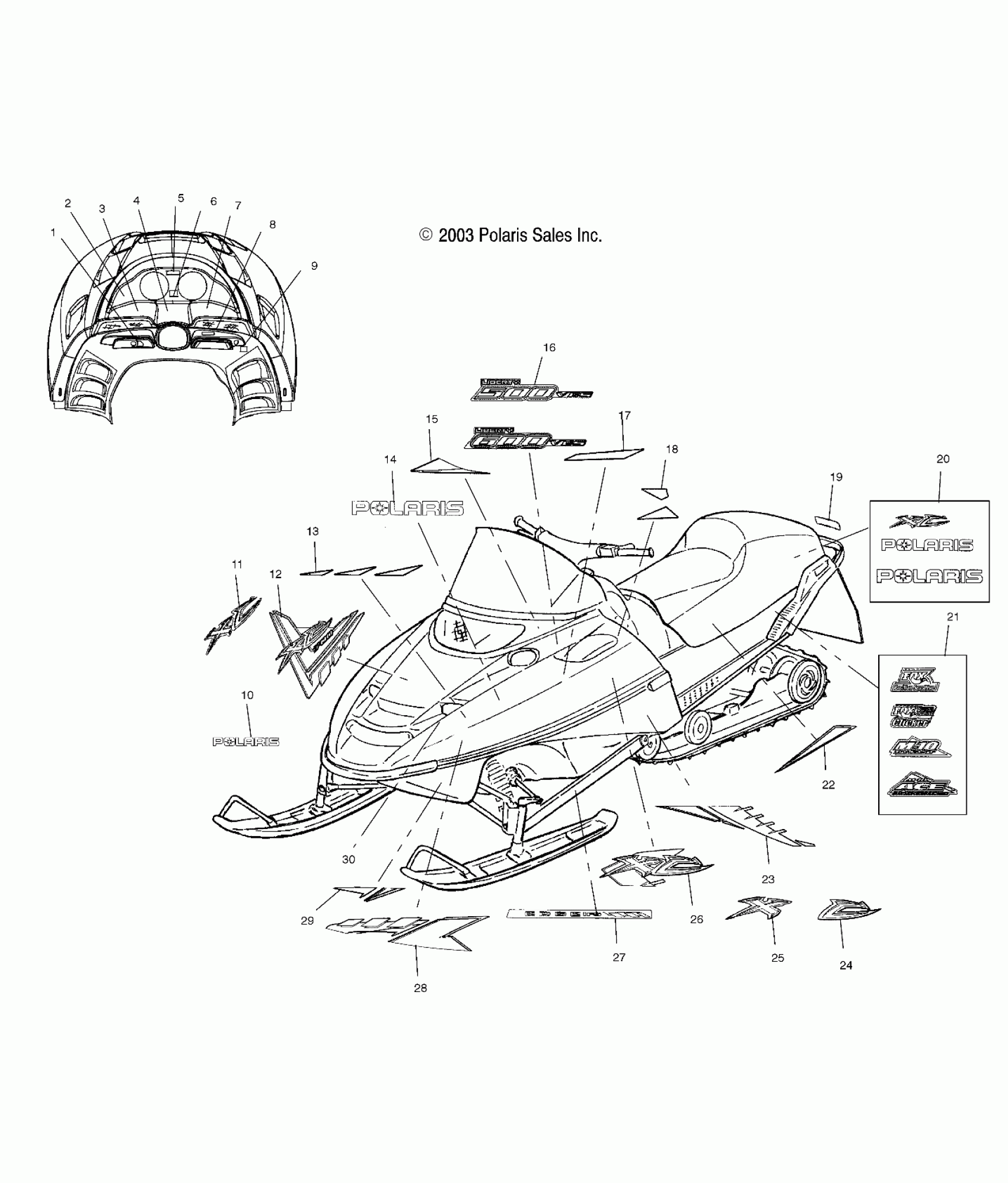 Polaris 500/600 XC SP EDGE/M-10 - S04NP5CS DECALS - S04NP5CS/A/B/C/S04NE5CS/S04NP6ES/A/B/C/S04NE6ES (4988618861A13) Diagram