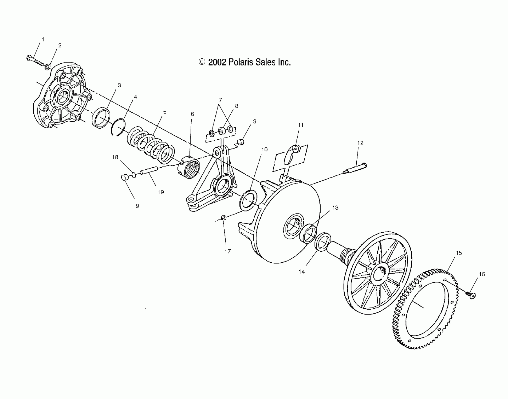 Polaris 500/600 XC SP EDGE/M-10 - S04NP5CS DRIVE CLUTCH (ELECTRIC START MODELS) - S04NP5CS/A/B/C/S04NE5CS/S04NP6ES/A/B/C/S04NE6ES (4988618861D05) Diagram