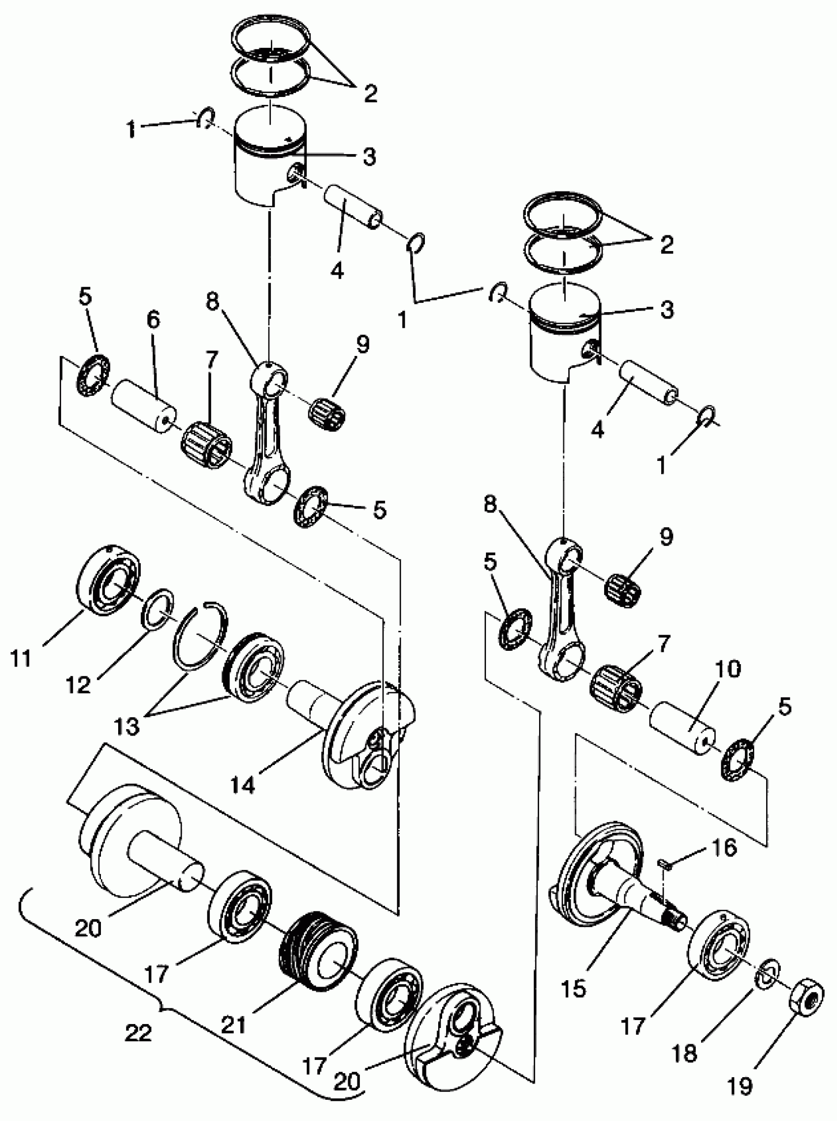 PISTON and CRANKSHAFT 500 CARB 0962764, 500 CARB SKS 0962564, EUROPEAN 500 (4931873187C014)
