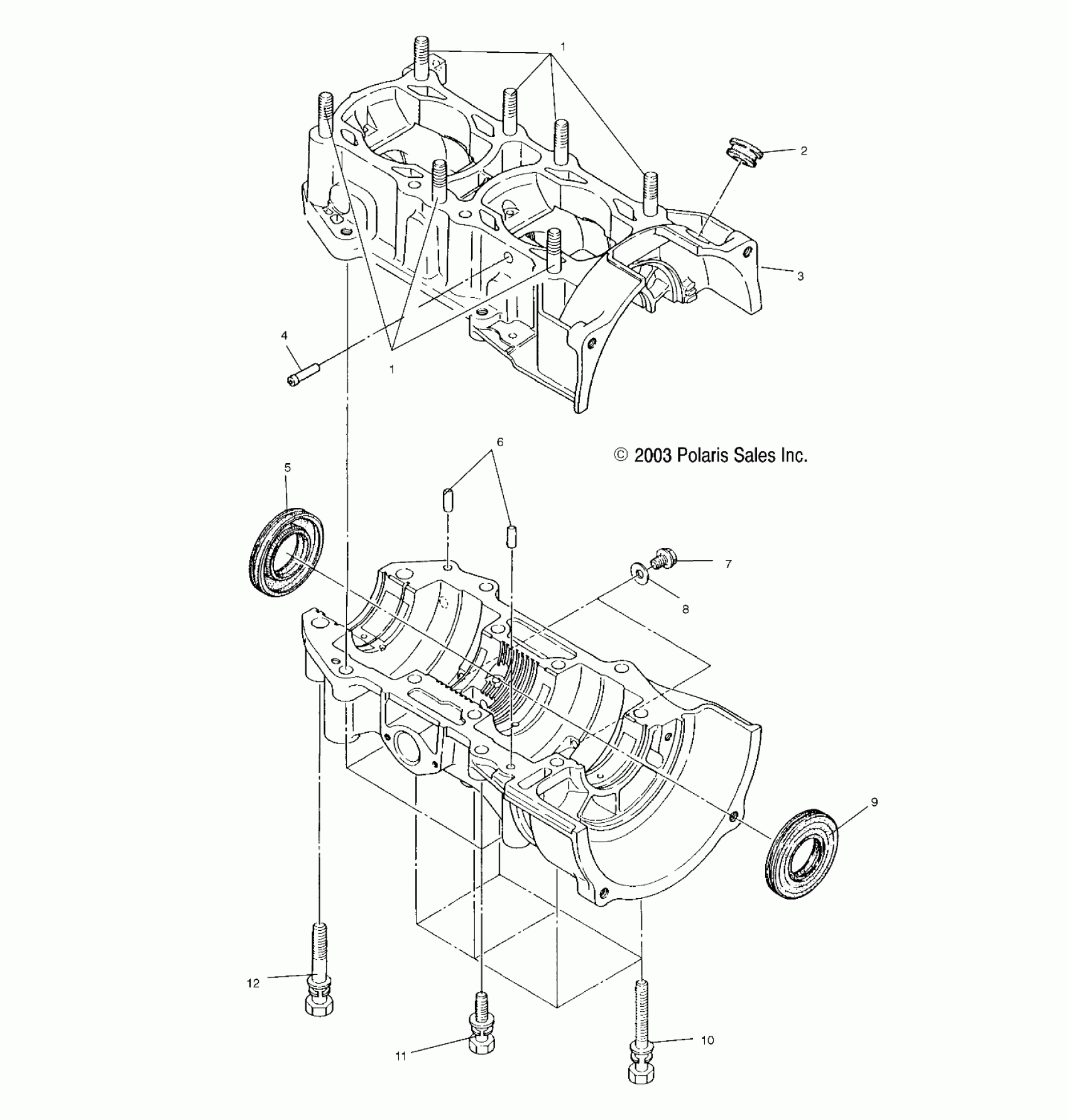 Polaris 500 CLASSIC - S04ND4BS CRANKCASE - S04ND4BS/BSA (4988678867C12) Diagram
