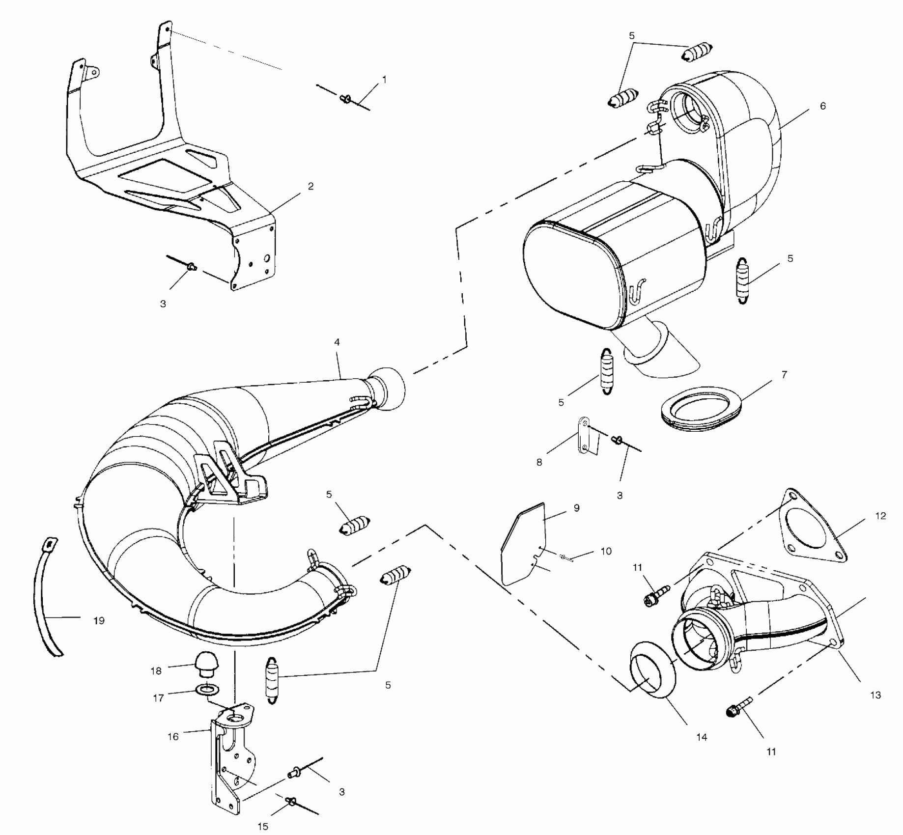 Polaris 500 RMK - S00SR5AS EXHAUST SYSTEM - S00SR5AS (4953915391c001) Diagram