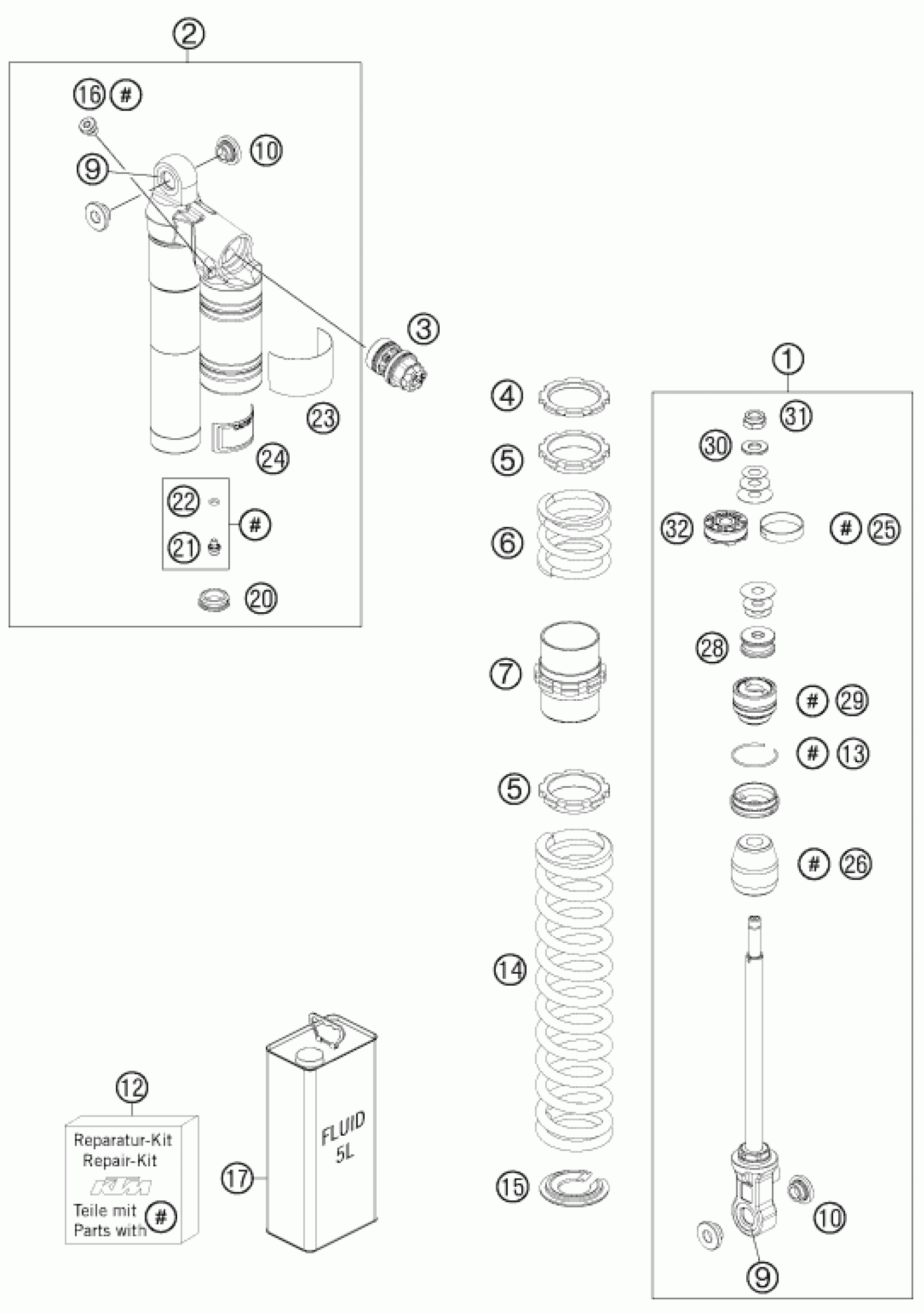 KTM 505 SX ATV 2012 SHOCK ABSORBER DISASSEMBLED Diagram