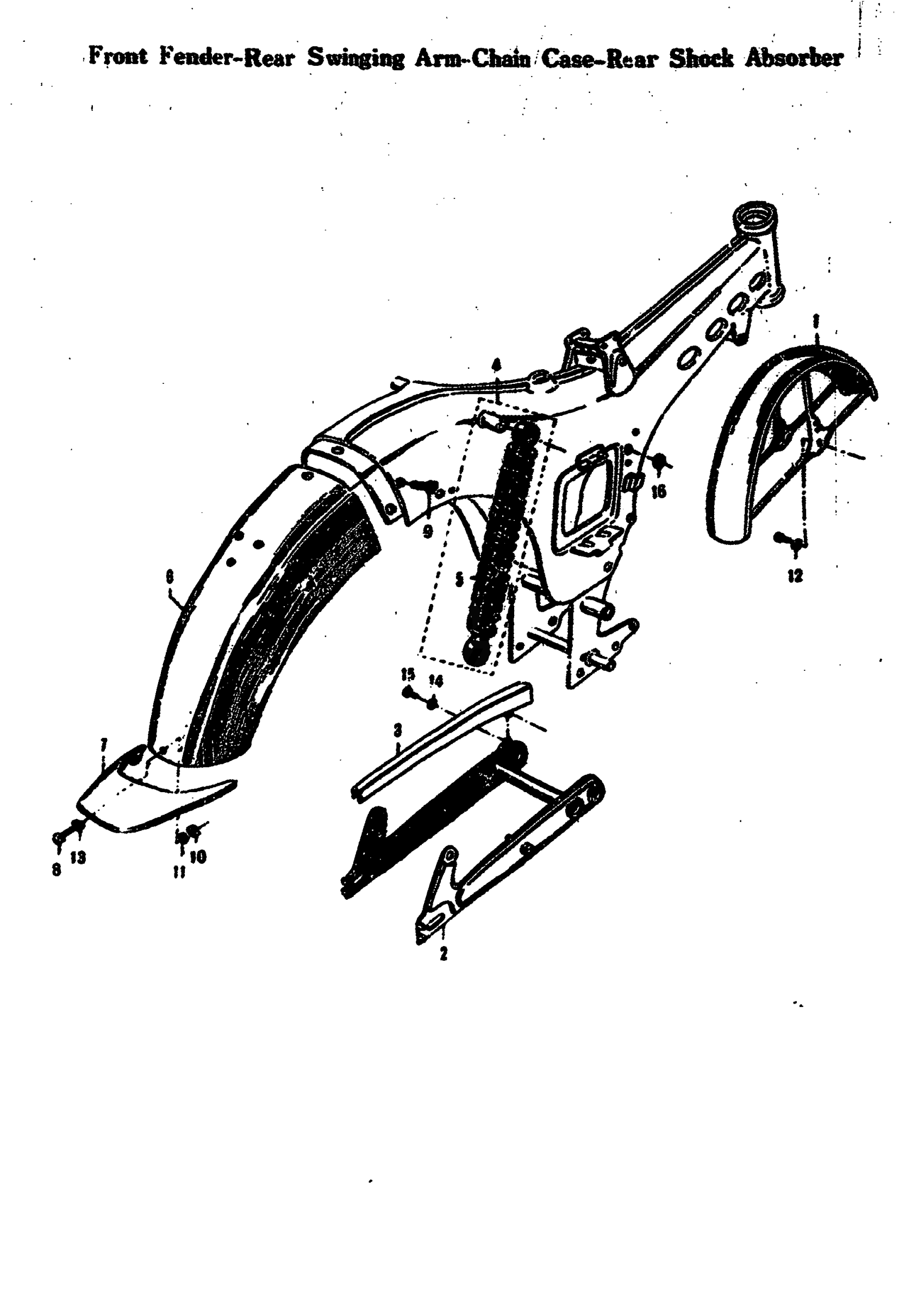FENDER-REAR SWINGING ARM-CHAIN CASE-REAR SHOCK ABSORBER