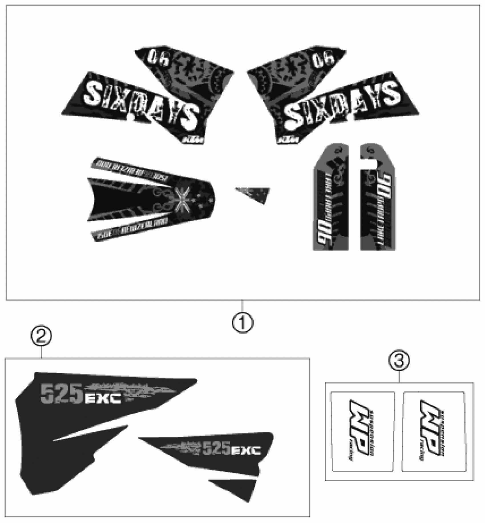 KTM 525 EXC RACING SIX-DAYS 2007 DECAL Diagram