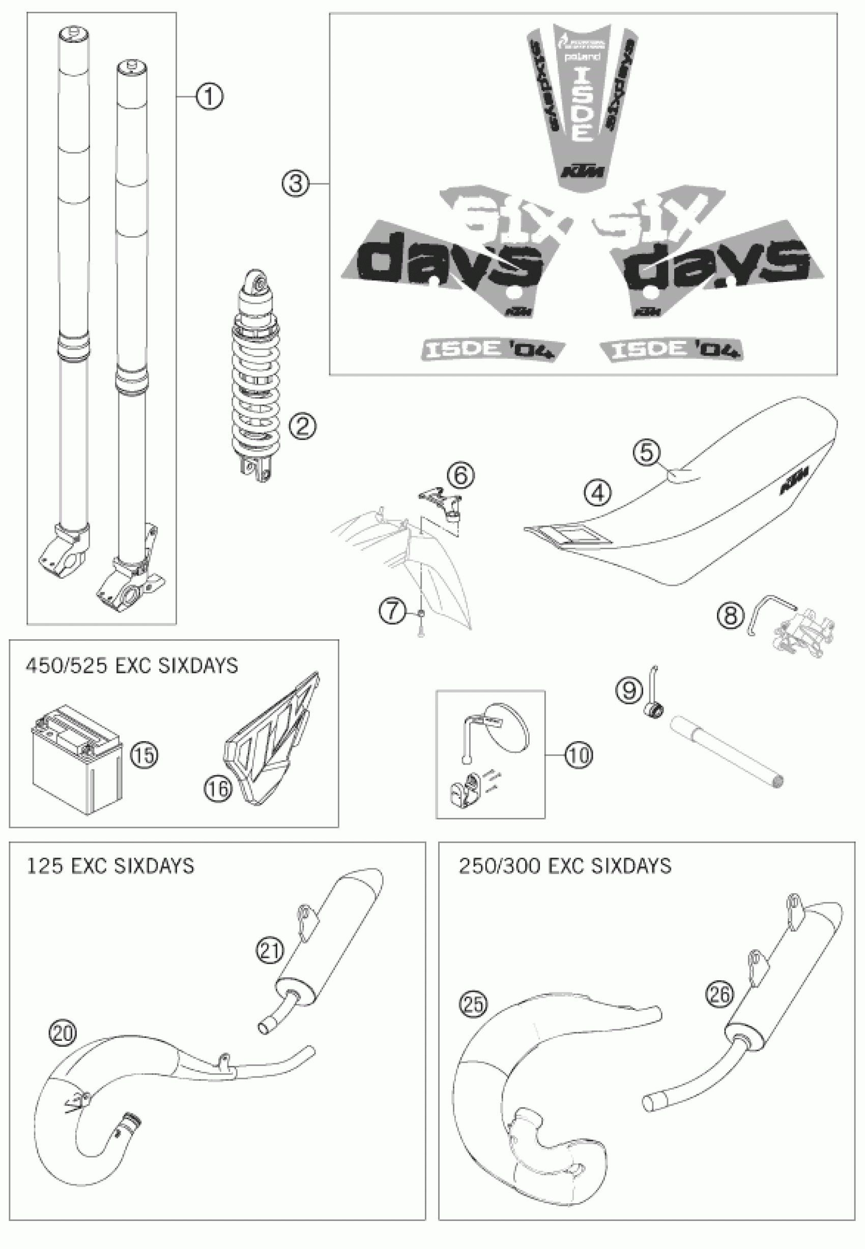 KTM 525 SX SUPERMOTO 2005 NEW PARTS Diagram