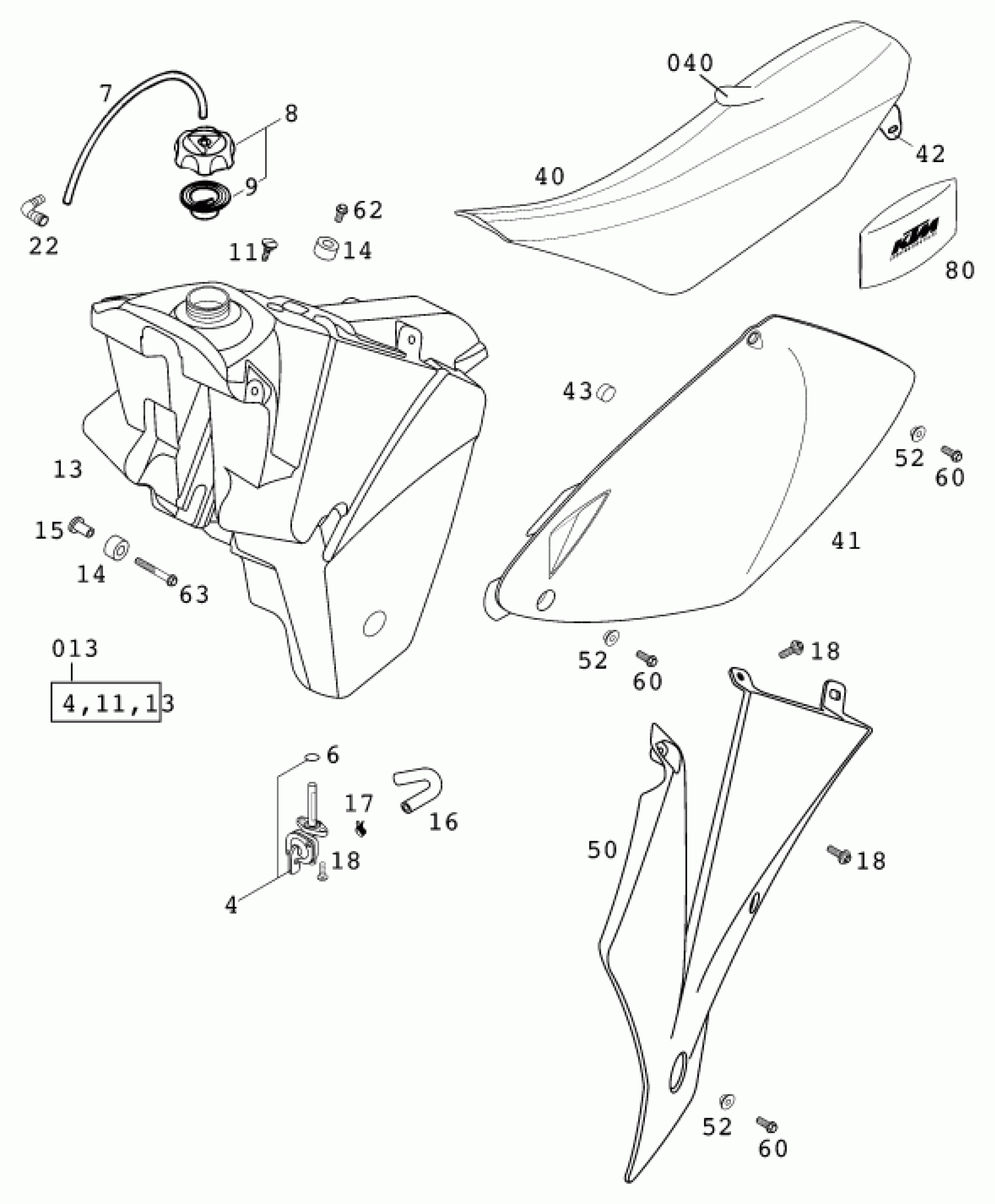 KTM 540 SXS RACING 2001 TANK, SEAT Diagram