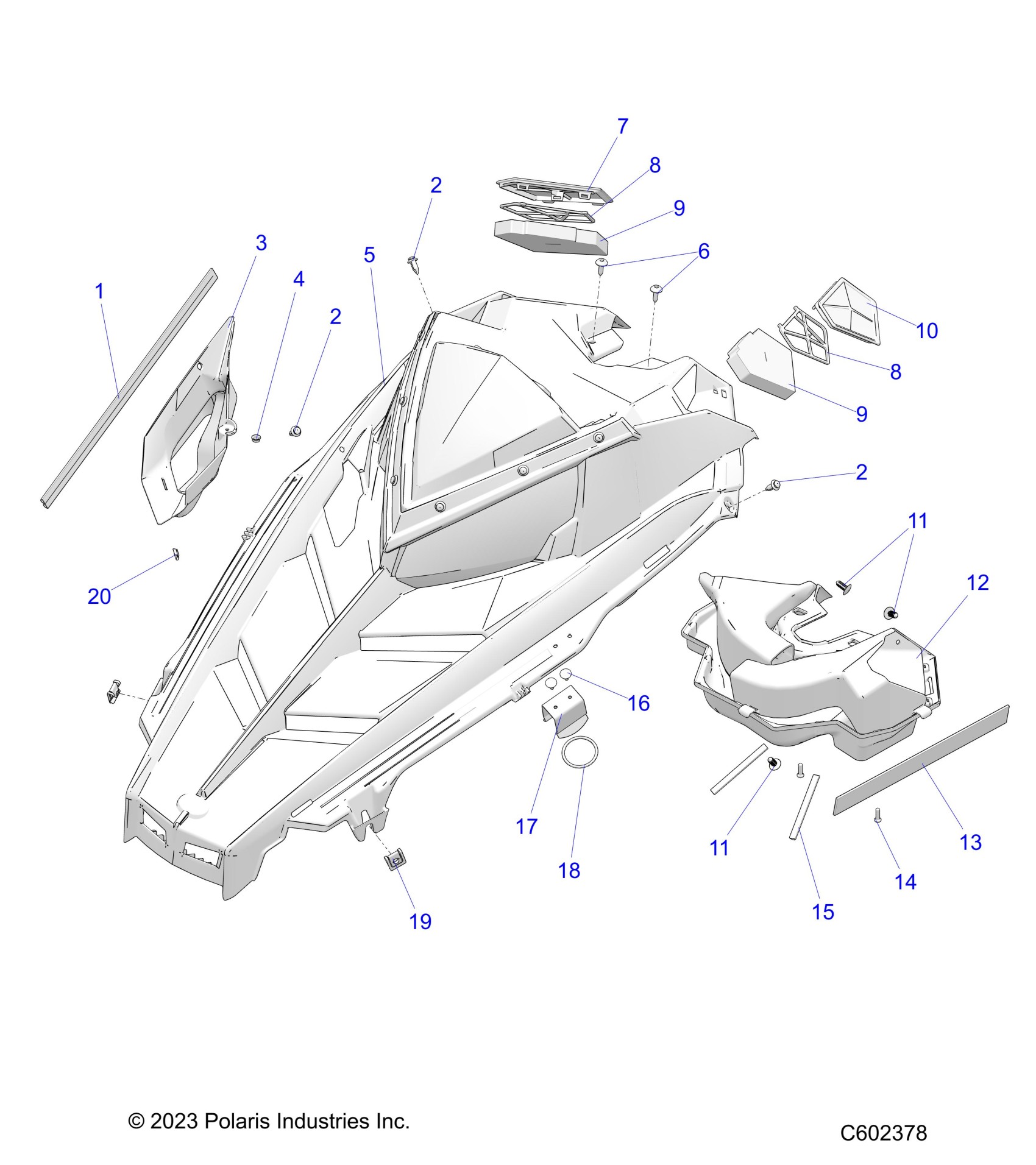 Polaris 550 VOYAGEUR LXT ES/NORTH EDITION (R02) - S25CED5TSL/TSU BODY, HOOD ASM. - S25CED5TSL/TSU (C602378) Diagram