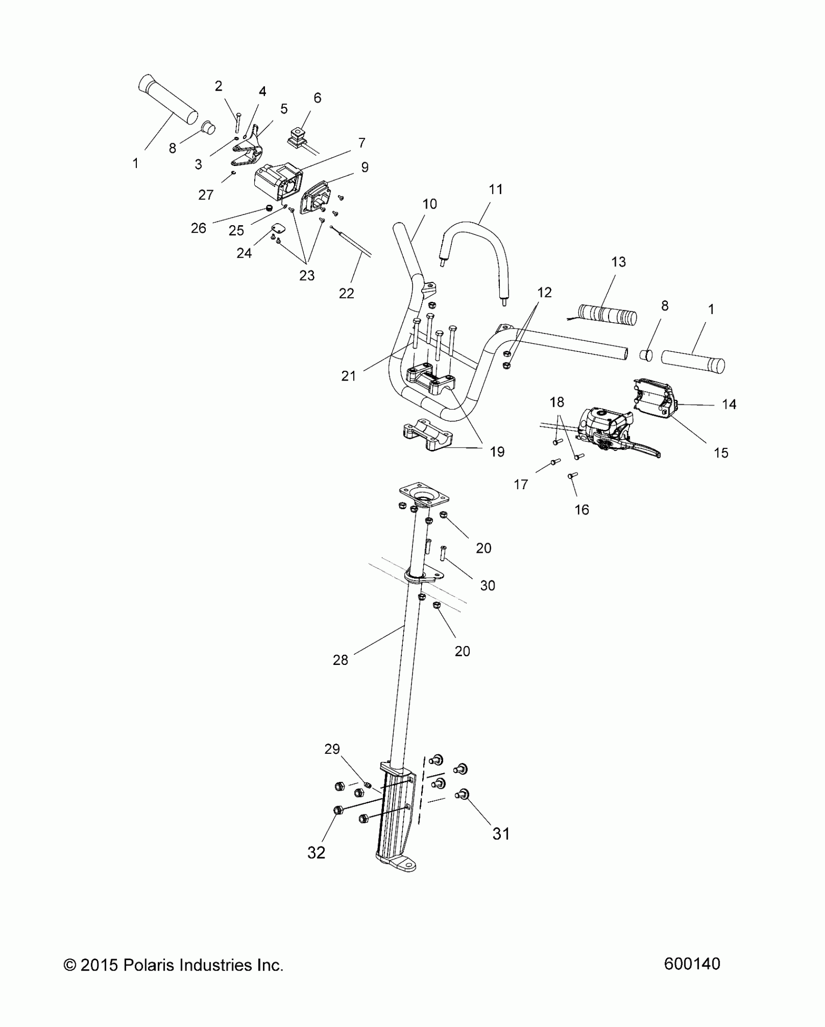 Polaris 550 WIDETRAK/LX ALL OPTIONS (R02) - S17SJA5B STEERING, HANDLEBAR AND POST - S17SJA5B ALL OPTIONS (600140) Diagram