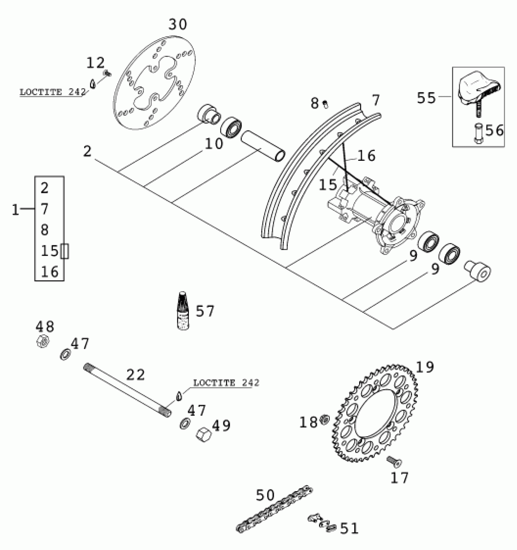 KTM 60 SX 2000 REAR WHEEL Diagram