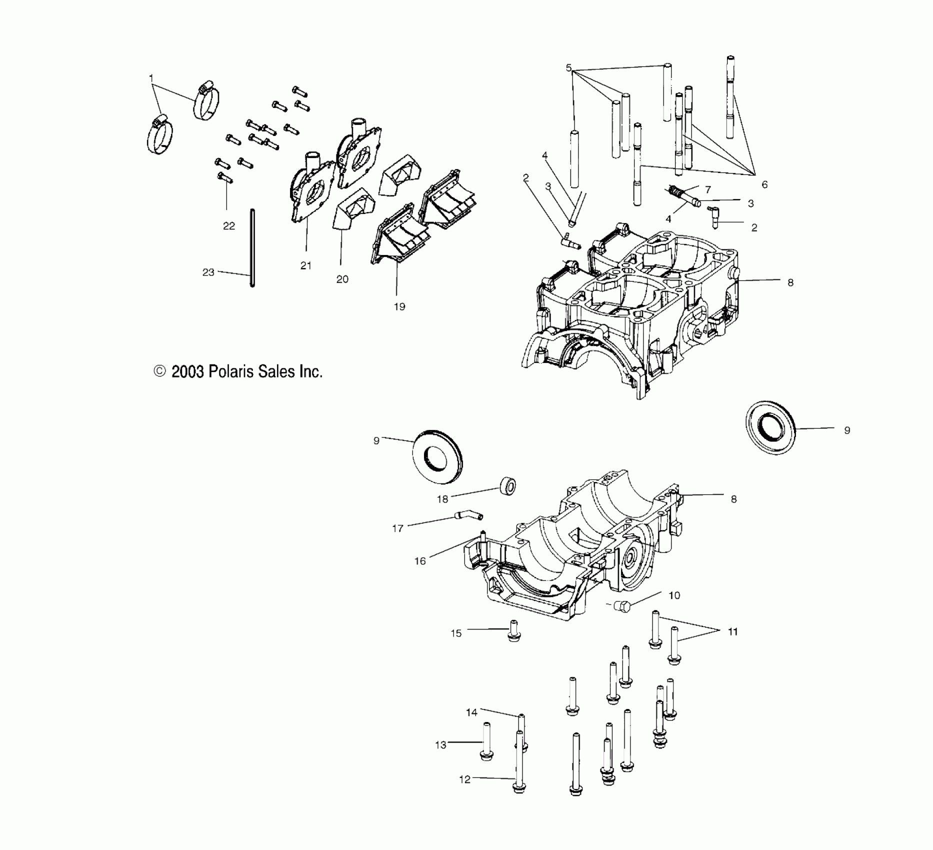 Polaris 600/700/800 PRO X/PRO X2 - S04NX6ES CRANKCASE (600) - S04NX6ES/EE/S04NY6ES/EE (4988598859C12) Diagram