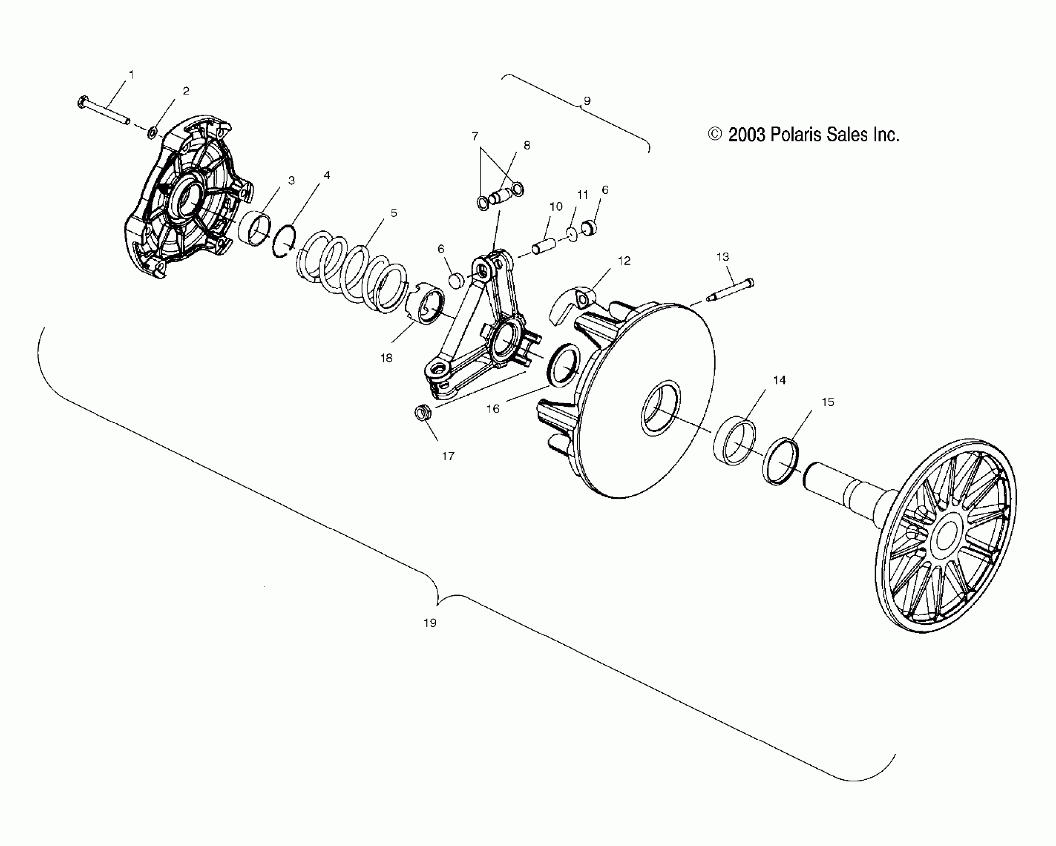 Polaris 600/700/800 RMK F/O - S04NK6ES DRIVE CLUTCH (MANUAL START MODELS) - S04NK6ES/A/B/C-S04NK7CS/A/B/C-S04NL7CS/A/B/C-S04NK8CS/A/B/C-S04NL8CS/A/B/C-S04NM8CS/A/B/C (4988398839C02) Diagram