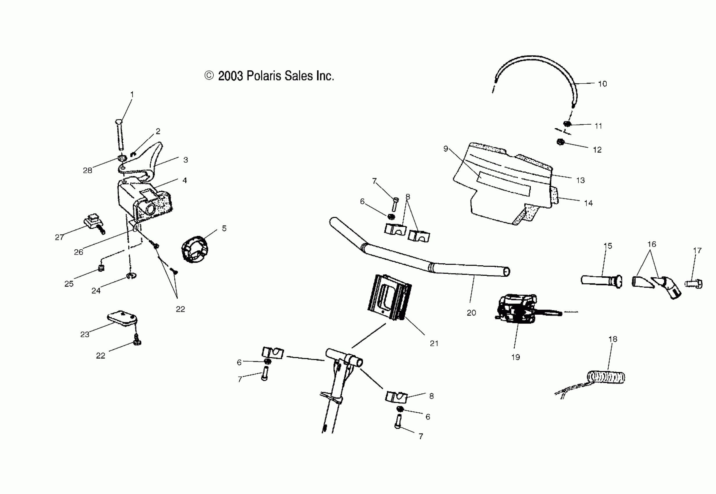 Polaris 600/700/800 RMK F/O - S04NK6ES STEERING/HANDLEBAR - S04NK6ES/A/B/C-S04NK7CS/A/B/C-S04NL7CS/A/B/C-S04NK8CS/A/B/C-S04NL8CS/A/B/C-S04NM8CS/A/B/C (4988398839B06) Diagram
