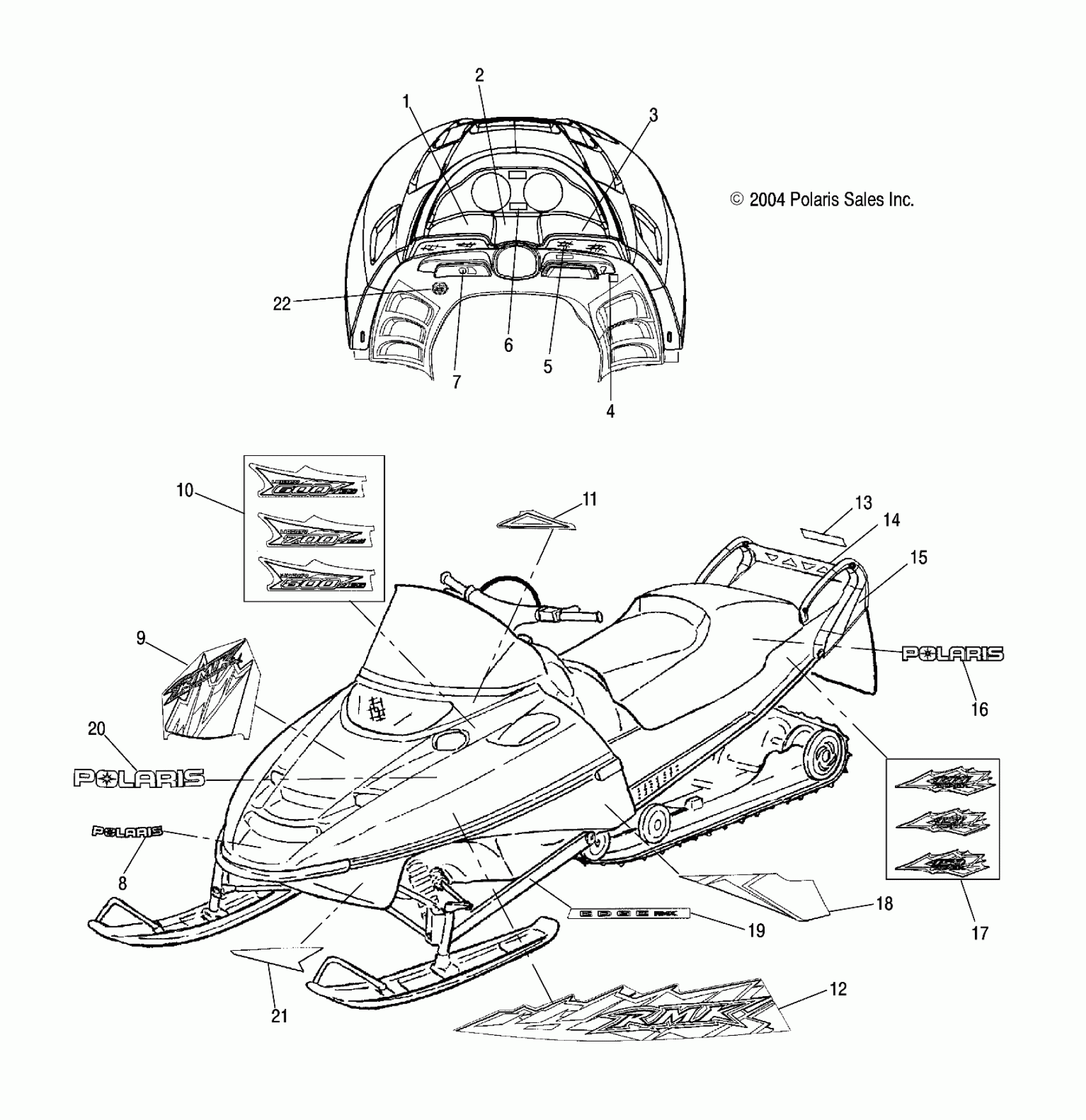 Polaris 600/700/800 RMK F/O - S05NK6ES DECALS - S05NK6ES/A-S05NK7CS/A-S05NL7CS/A-S05NK8CS/A-S05NL8CS/A-S05NM8CS/A (4992789278A13) Diagram