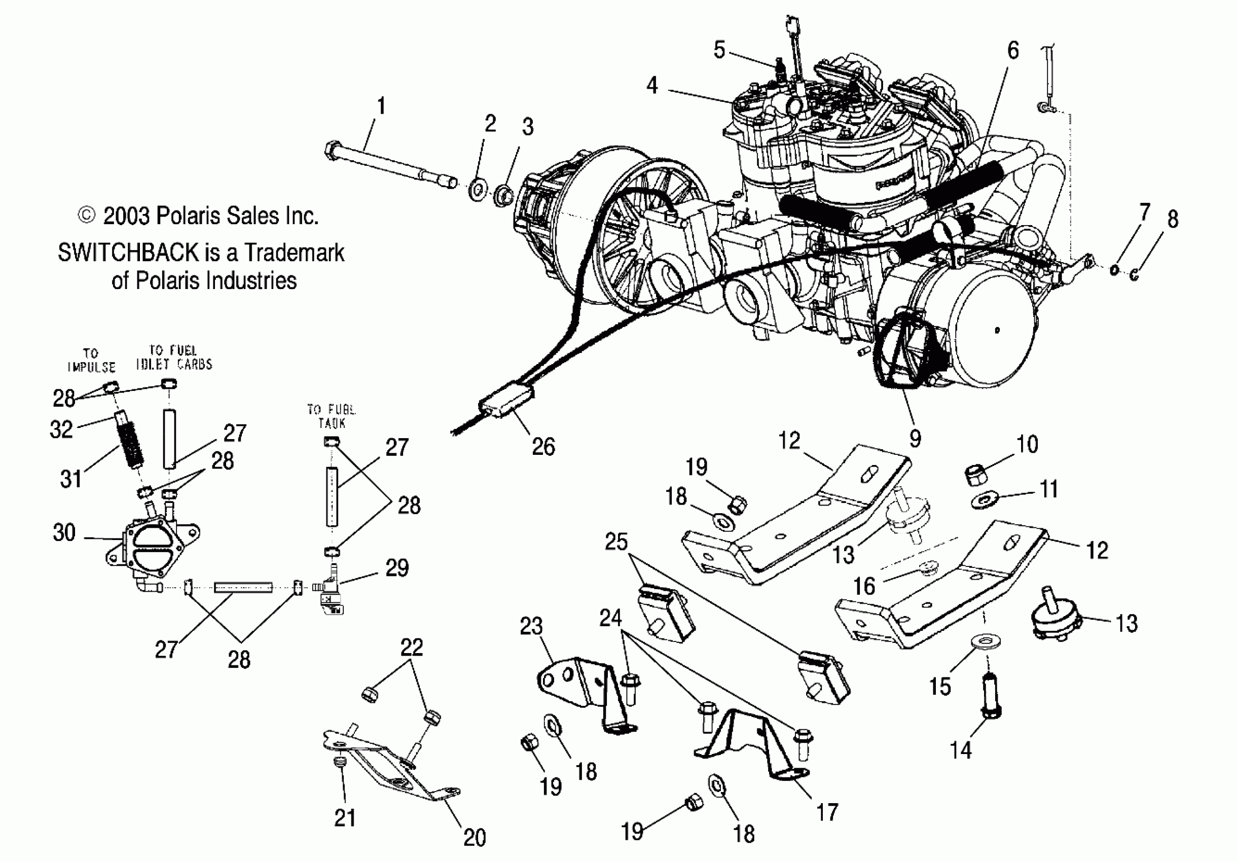 Polaris 600/700/800 SWITCHBACK - S04NS6ES ENGINE MOUNTING (700)(800) - S04NS7CS/A/B/C/D-S04NS8CS/A/B/C/D (4988378837C08) Diagram