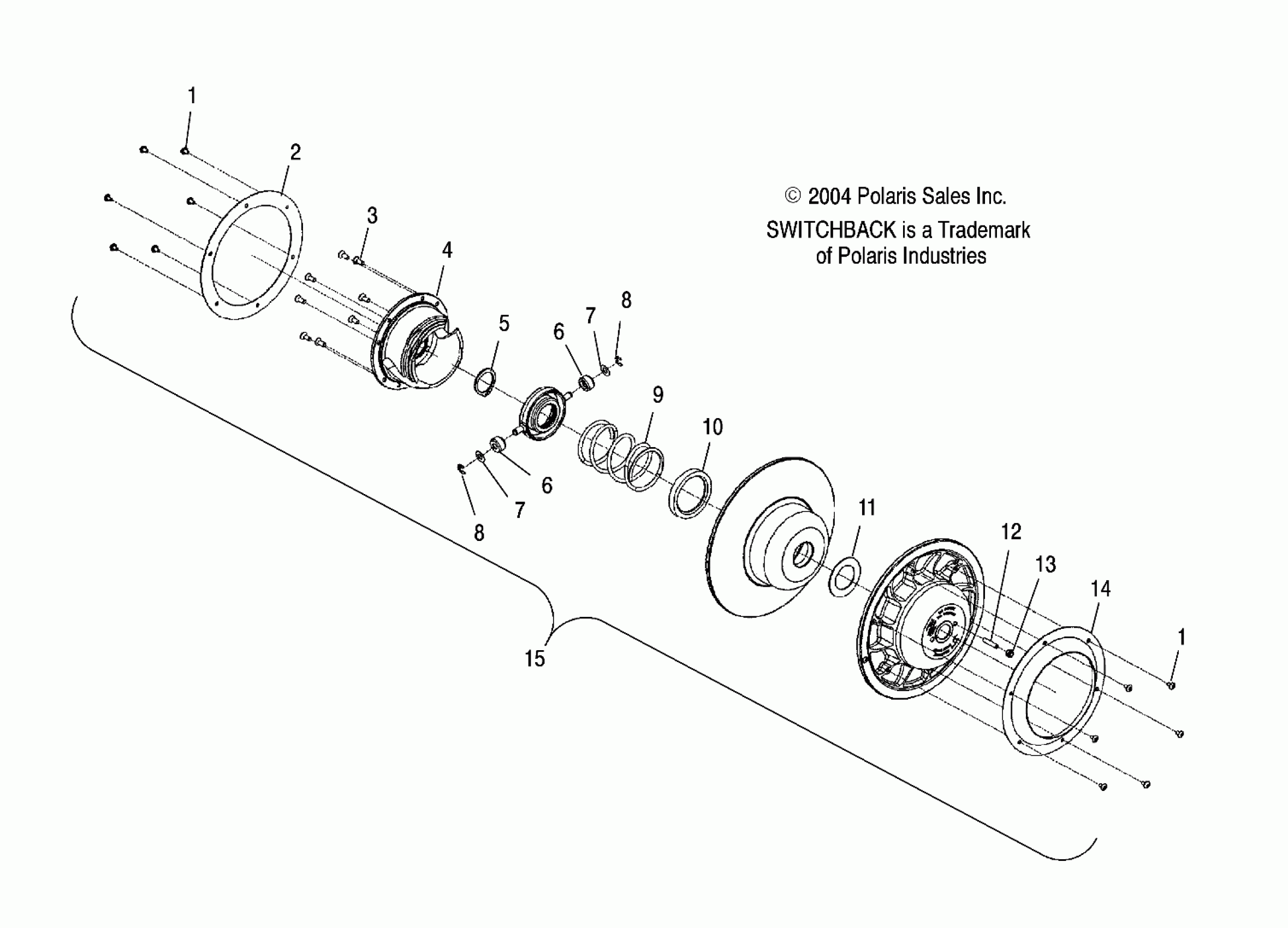 Polaris 600/800 SWITCHBACK F/O - S05NS6ES DRIVEN CLUTCH - S05NS6ES/ESA/S05NS8CS/CSA (4992809280C02) Diagram