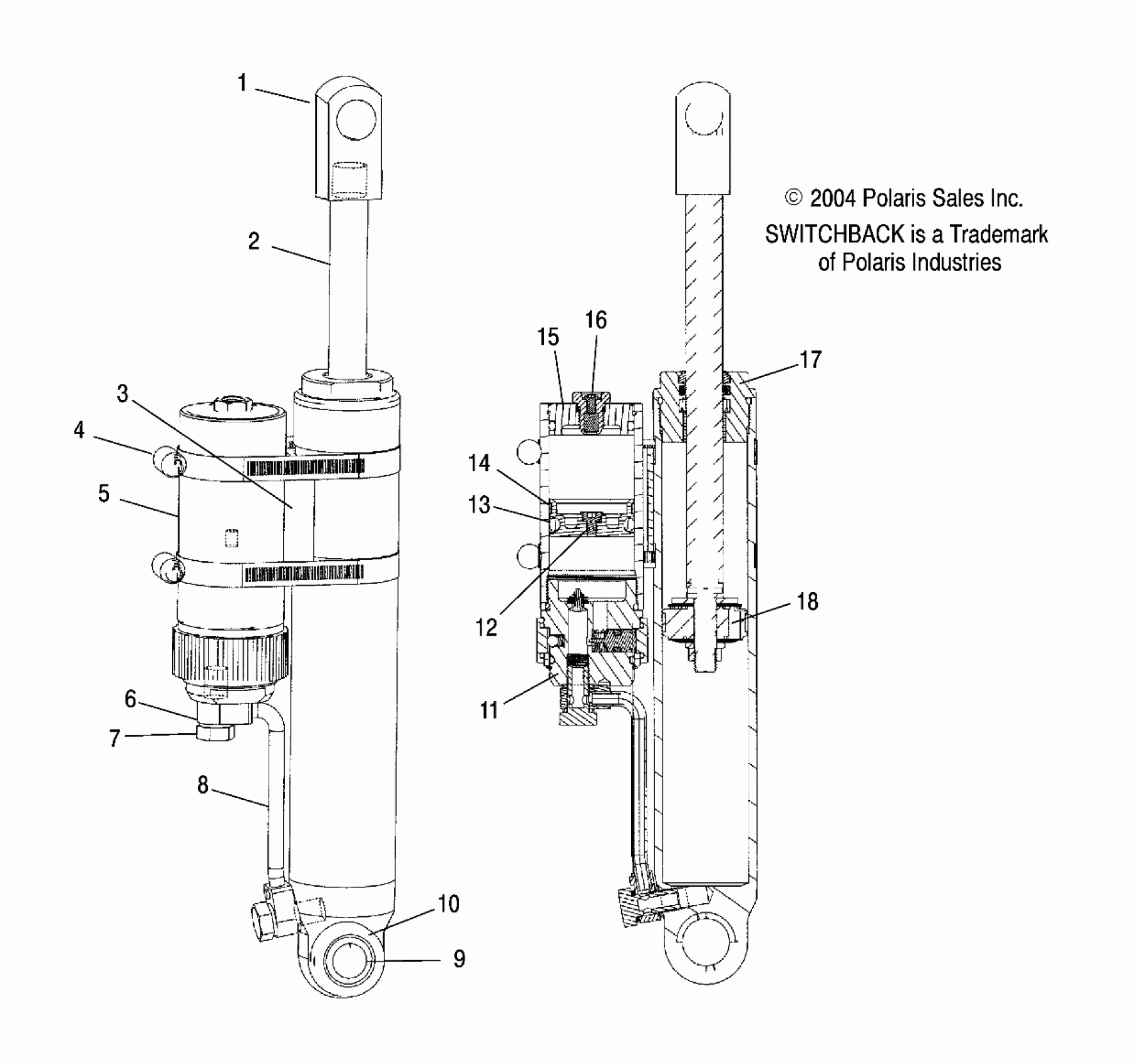 Polaris 600/800 SWITCHBACK F/O - S05NS6ES SHOCK (REAR TRACK) - S05NS6ES/ESA/S05NS8CS/CSA (4992809280C07) Diagram