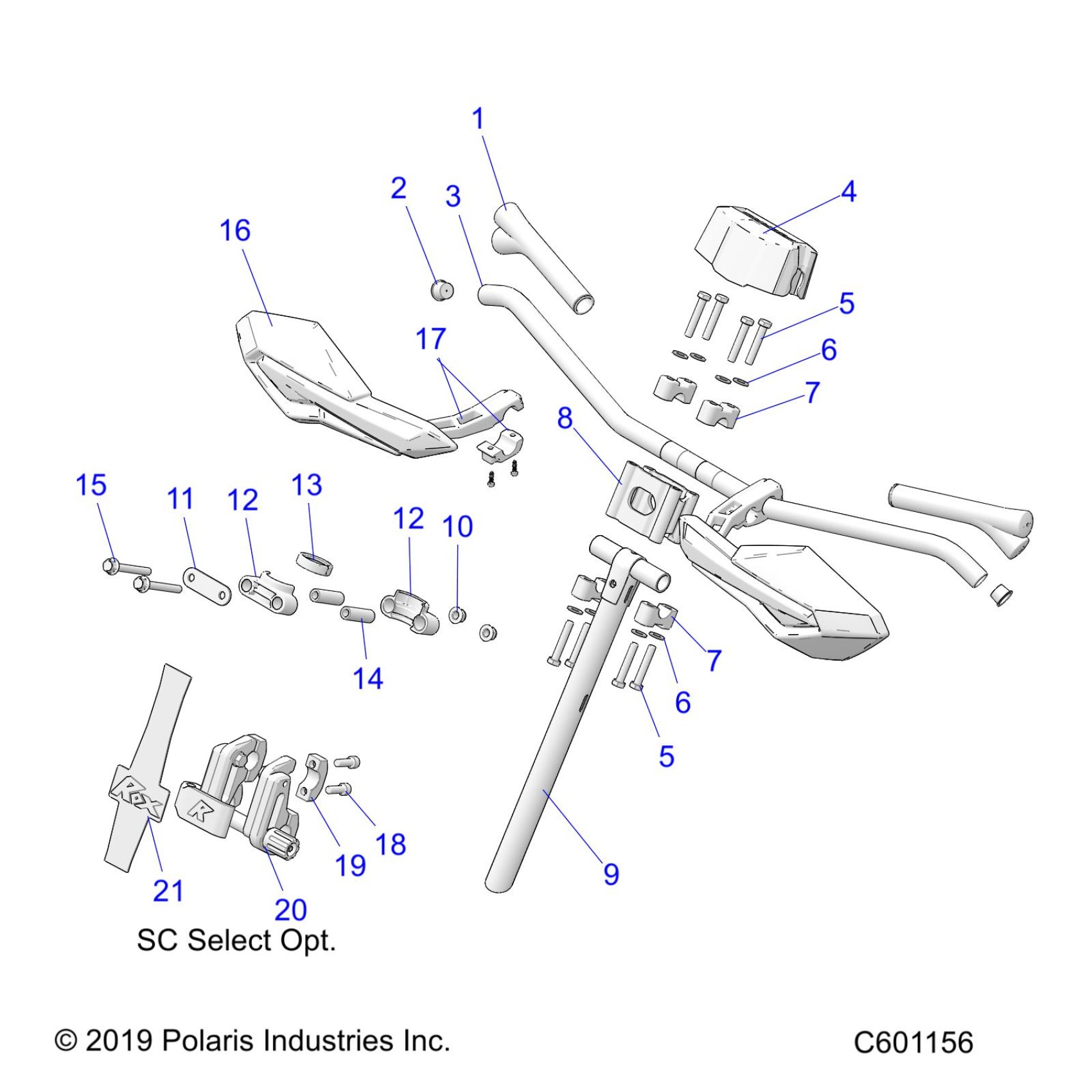 STEERING, UPPER and HANDLEBAR ASM. - S21EDP6PS ALL OPTIONS (C601156)