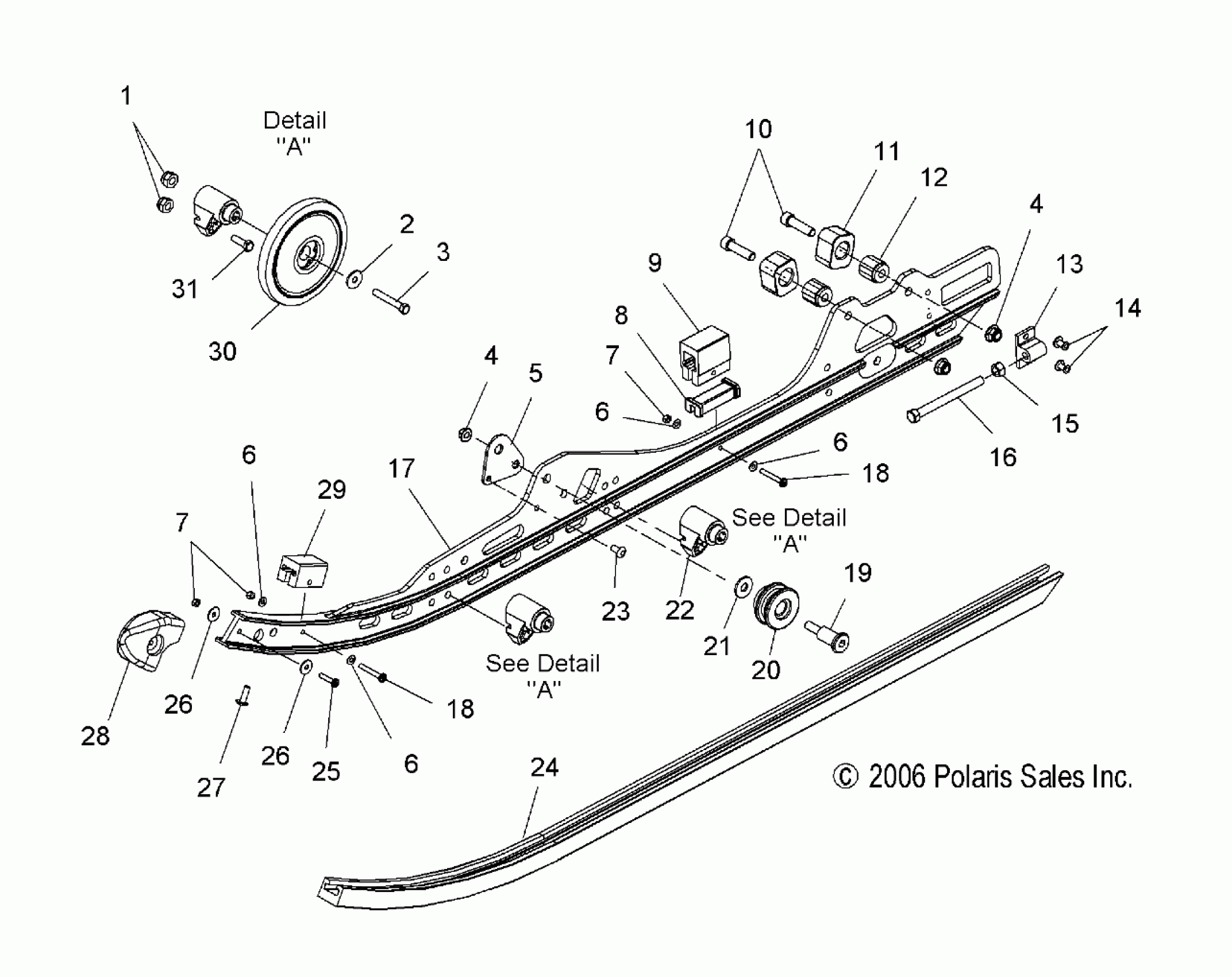 Polaris 600 HO IQ F/O - S07PP6FS/FSA/FSB SUSPENSION, RAIL MOUNTING - S07PP6FS/FSA/FSB (49SNOWSUSPRAIL600HO) Diagram