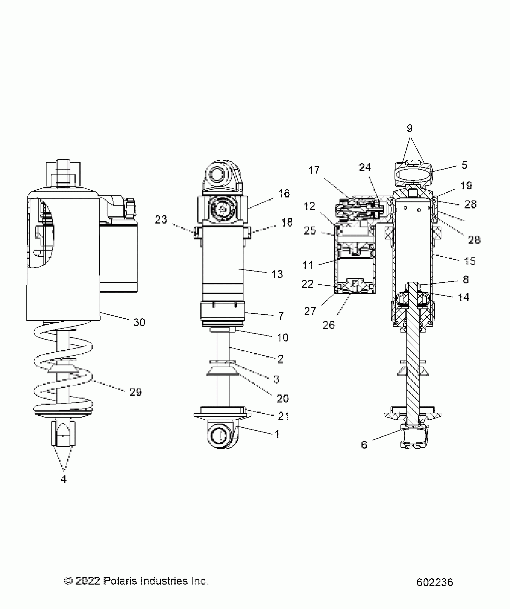 Polaris 600 INDY CROSSCOUNTRY 136 (R01) - S23TDL6KSA SUSPENSION, SHOCK, FRONT TRACK - S23TDL6KSA (602236) Diagram