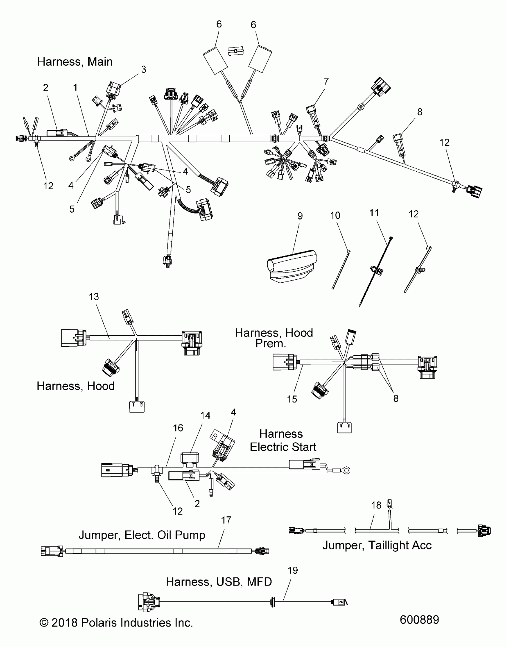 Polaris 600 INDY XC 129 SC SELECT ALL OPTIONS (R04) - S19EKP6PS/PEM ELECTRICAL, WIRE HARNESS - S19EKP6PS/PEM (600889) Diagram