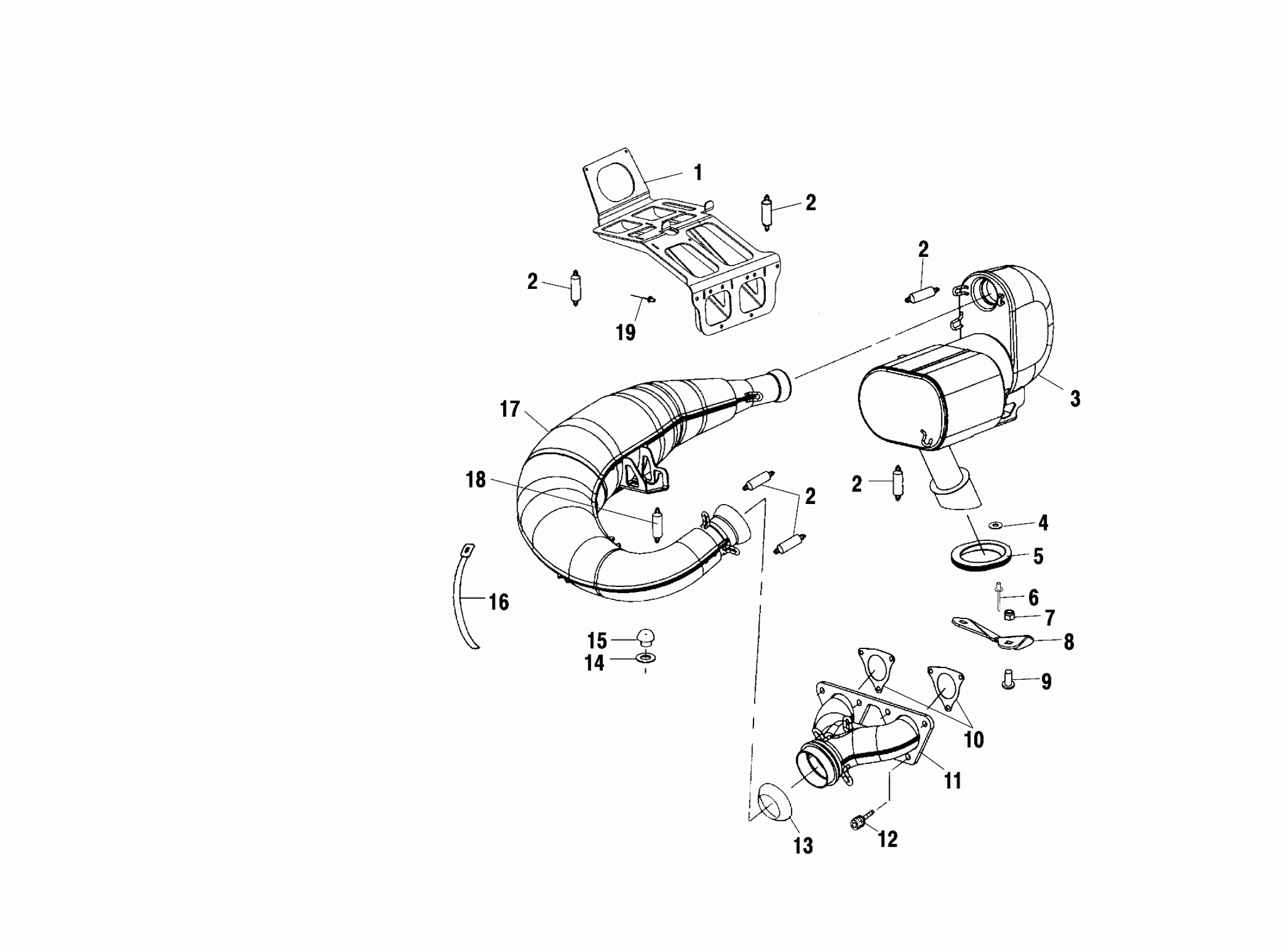 Polaris 600 RMK 136 BUILT AFTER 3/1/01 - S02NJ6ES EXHAUST SYSTEM - S02NJ6ES (4969456945C02) Diagram