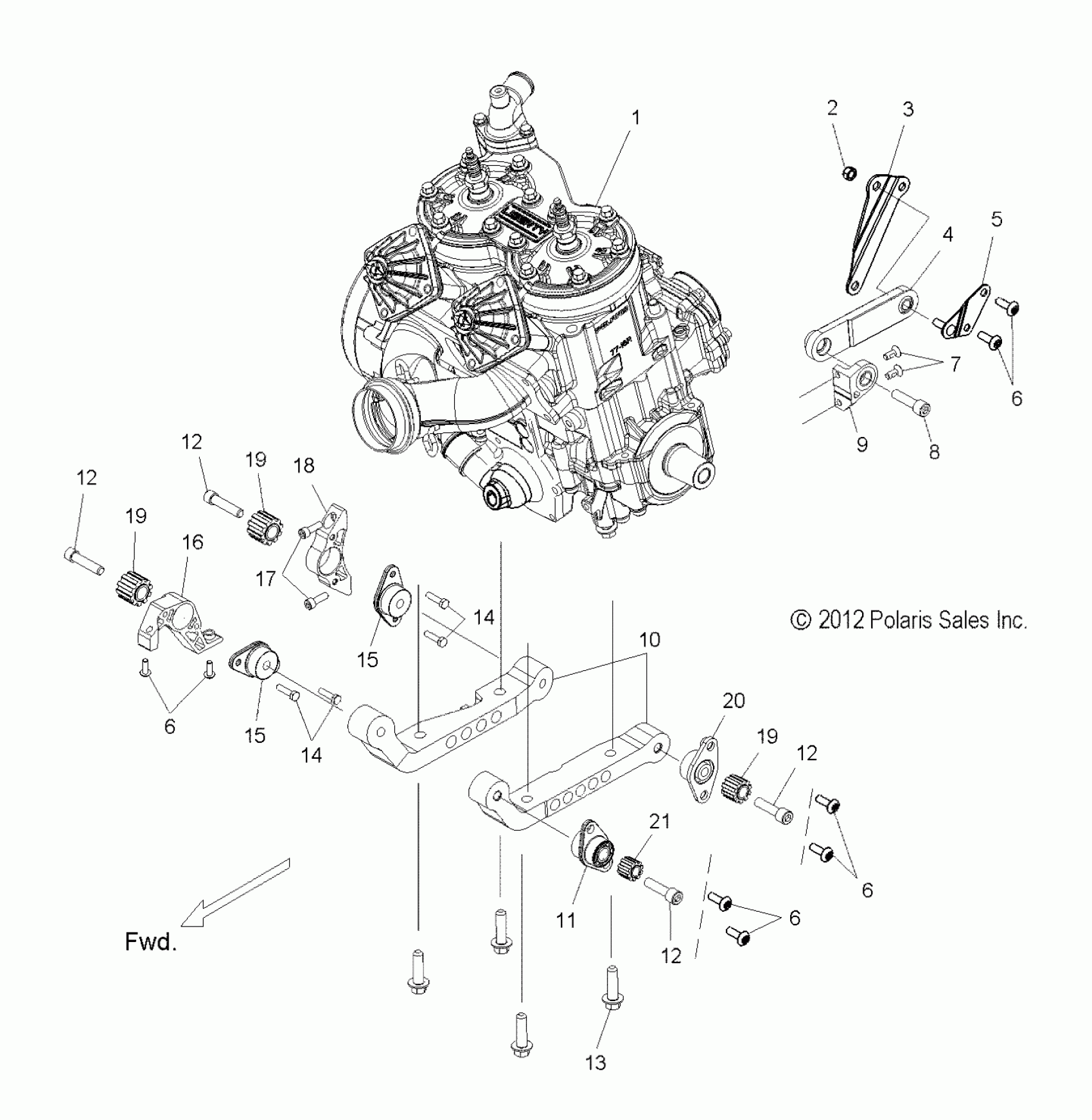 Polaris 600 RMK 144/155 ALL OPTIONS (R02) - S16CK6/CM6 ENGINE, MOUNTING & LONG BLOCK - S16CK6/CM6 ALL OPTIONS (49SNOWENGINEMOUNT13600LE) Diagram