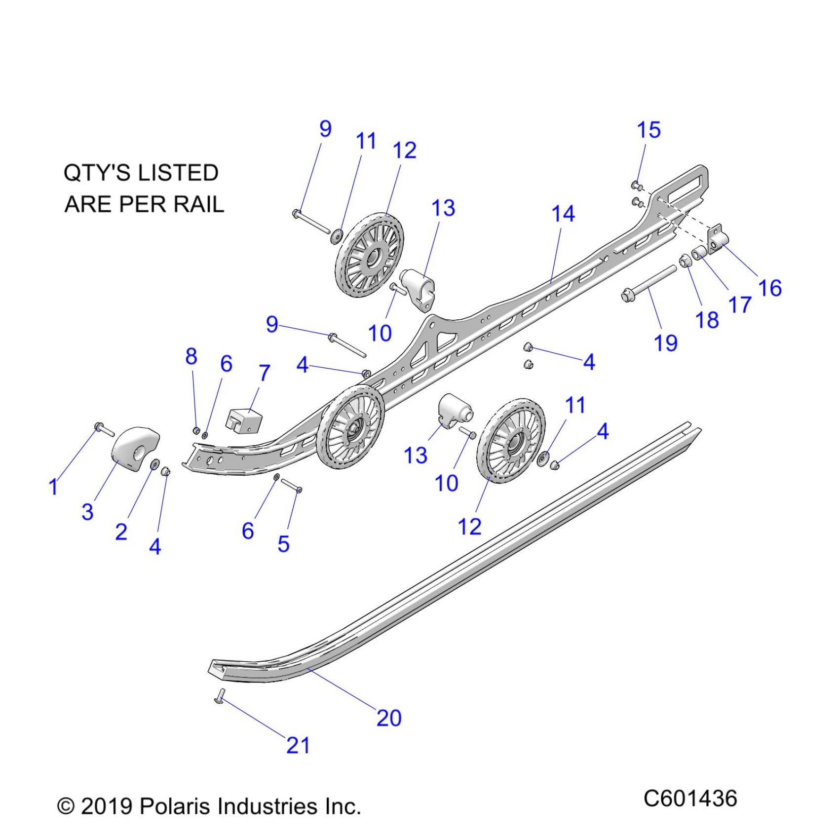 Polaris 600 RUSH PRO-S SC SELECT (R01) - S20DCH6PS SUSPENSION, RAIL ASM. - S20DCH6PS ALL OPTIONS (C601436) Diagram