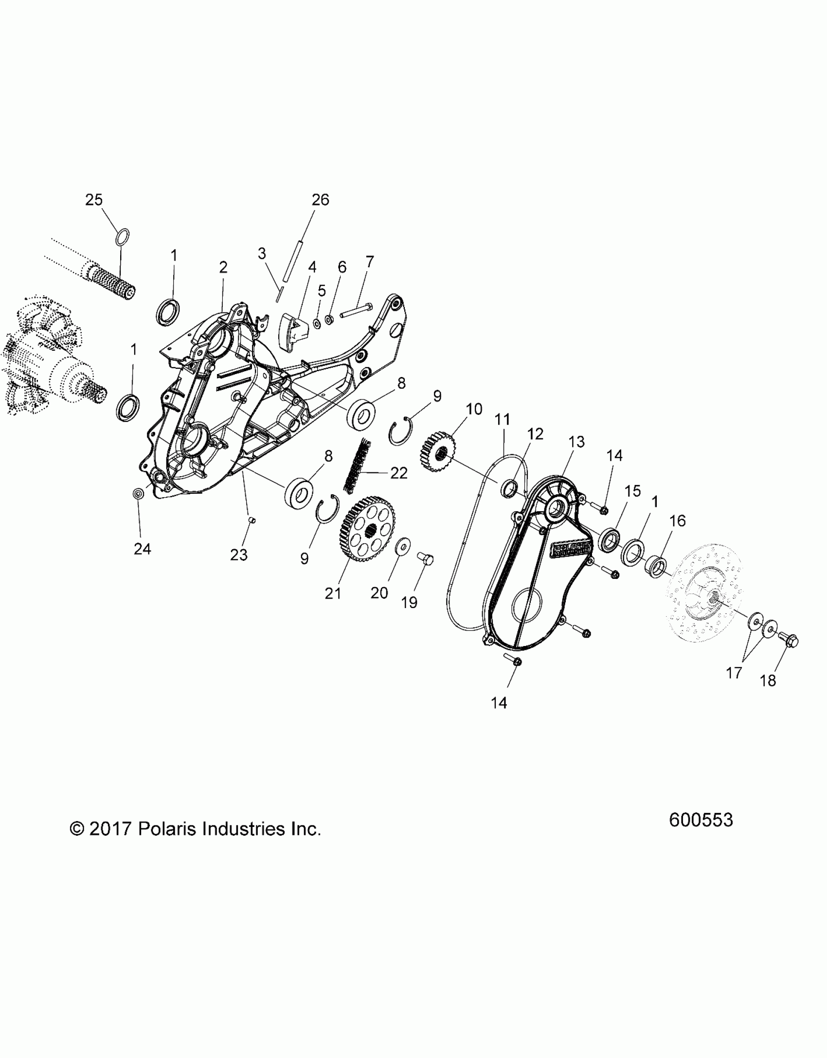 Polaris 600 RUSH XCR SC SELECT ALL OPTIONS (R02) - S19DCL6PS/6PEM DRIVE TRAIN, CHAINCASE - S19DCL6PS/6PEM (600553) Diagram