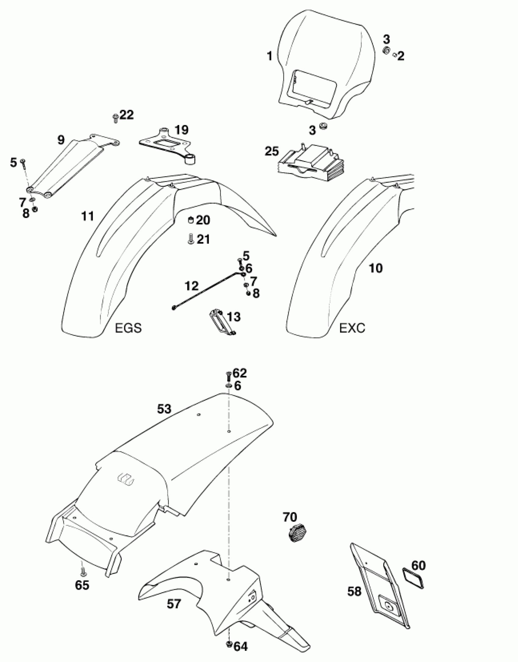 KTM 620 EGS WP 37KW 20LT ROT <1996 MASK, FENDERS Diagram