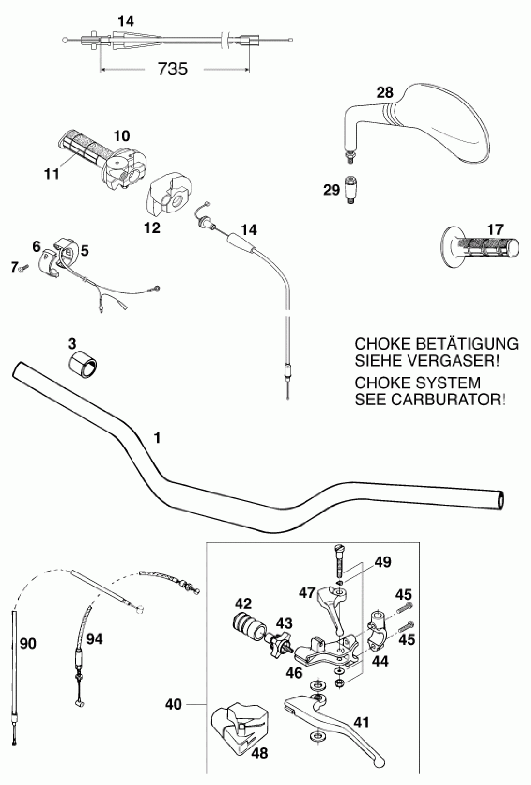 KTM 620 SC Super-moto 2000 HANDLEBAR, CONTROLS Diagram