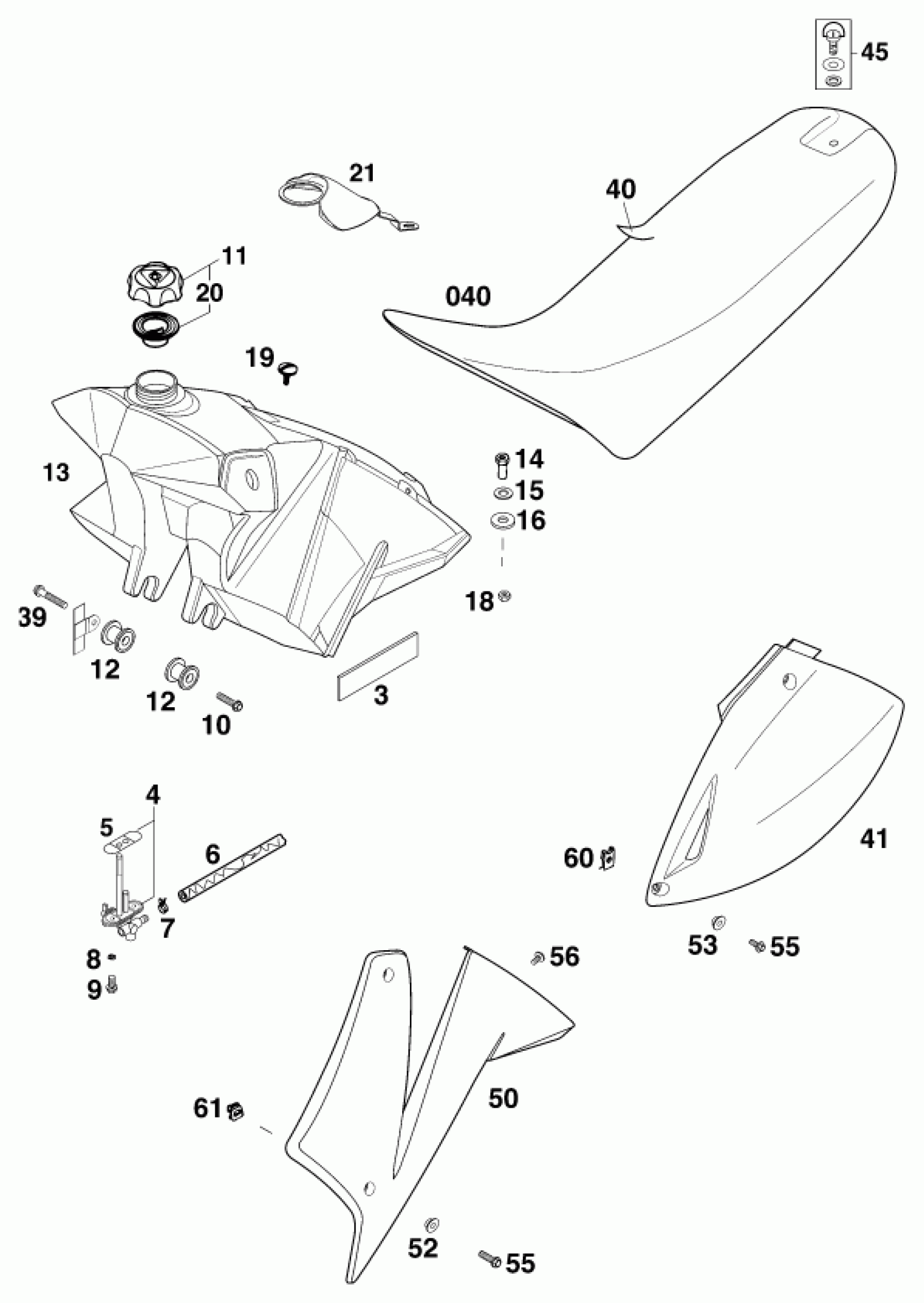 KTM 620 SC Super-moto 2000 TANK, SEAT Diagram