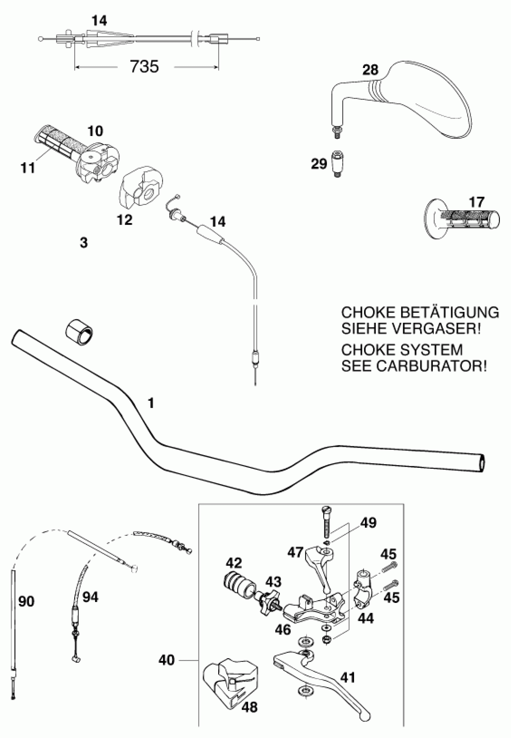 KTM 620 SUP-COMP 20kW <1999 HANDLEBAR, CONTROLS Diagram