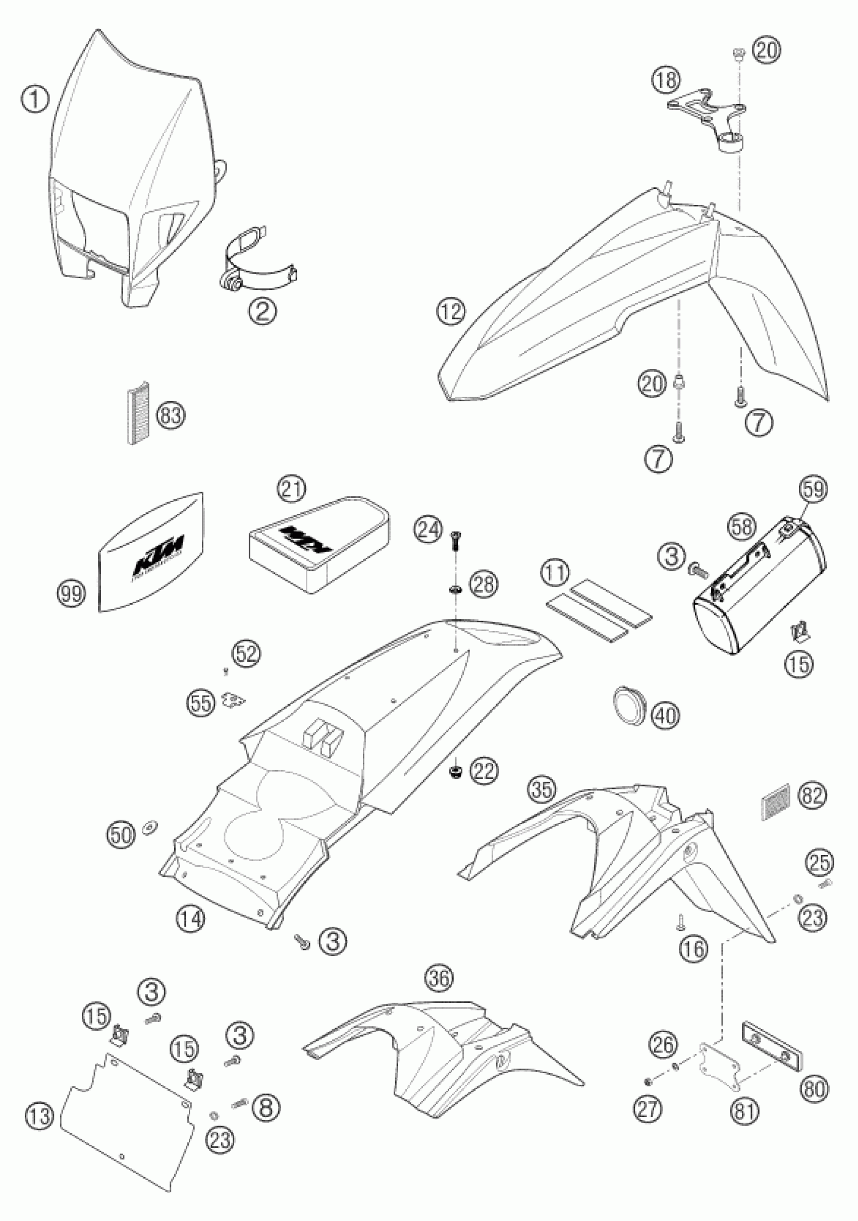 KTM 625 SMC 2004 MASK, FENDERS Diagram