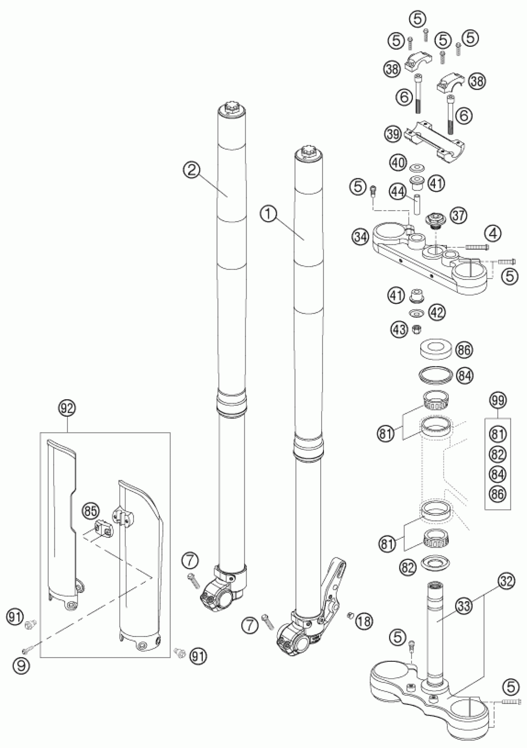 KTM 625 SMC 2005 FRONT FORK, TRIPLE CLAMP Diagram