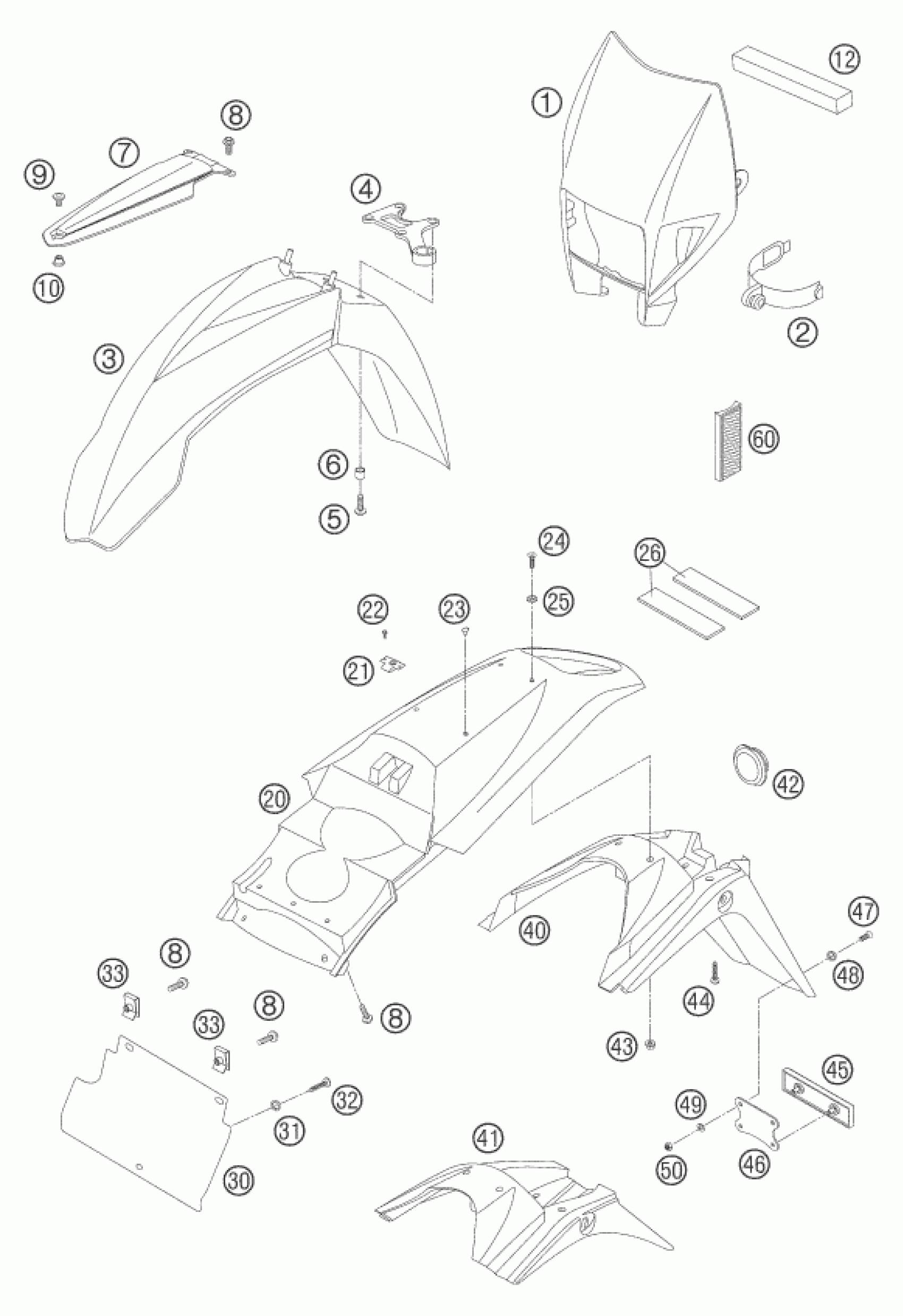 KTM 625 SXC 2006 MASK, FENDERS Diagram