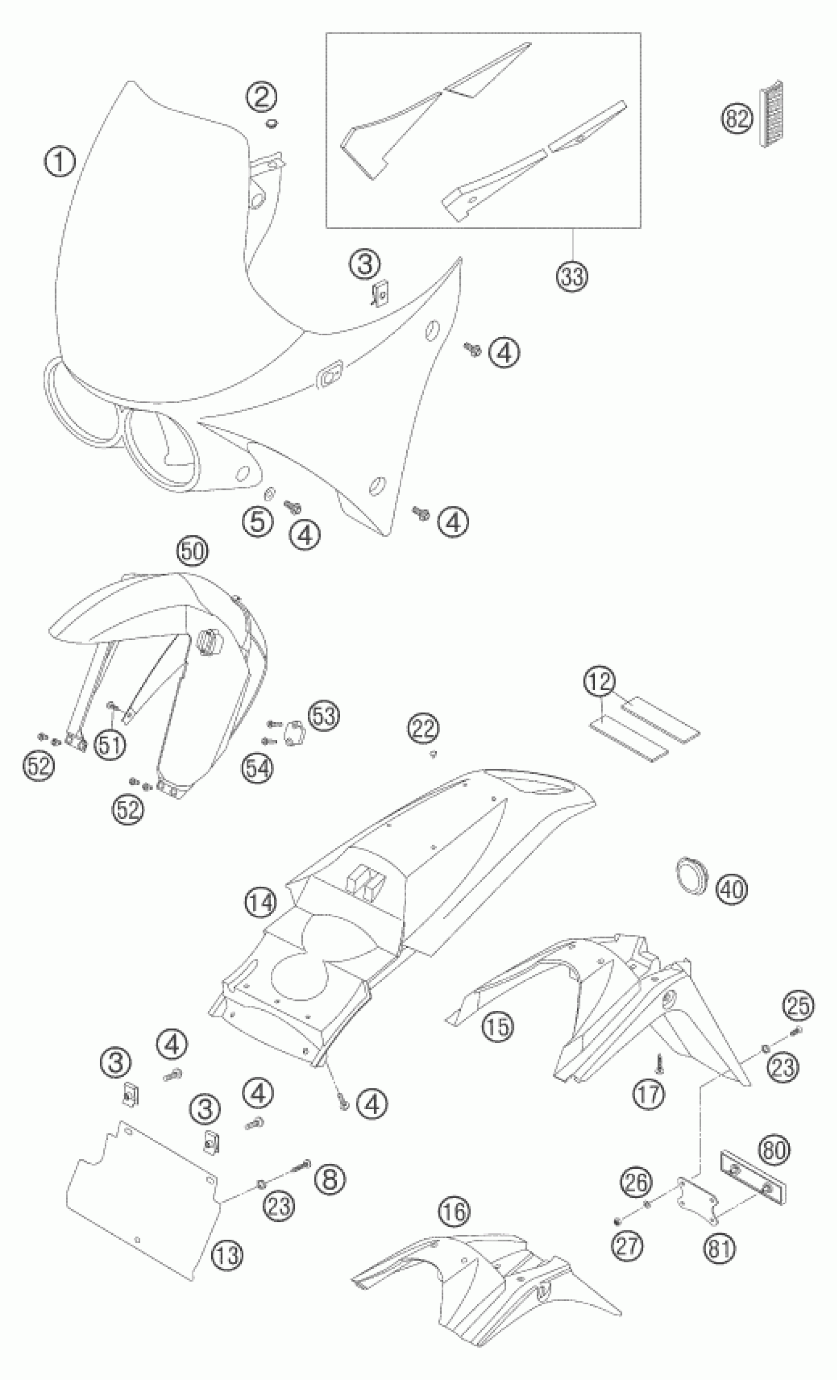 KTM 640 ADVENTURE 2005 MASK, FENDERS Diagram